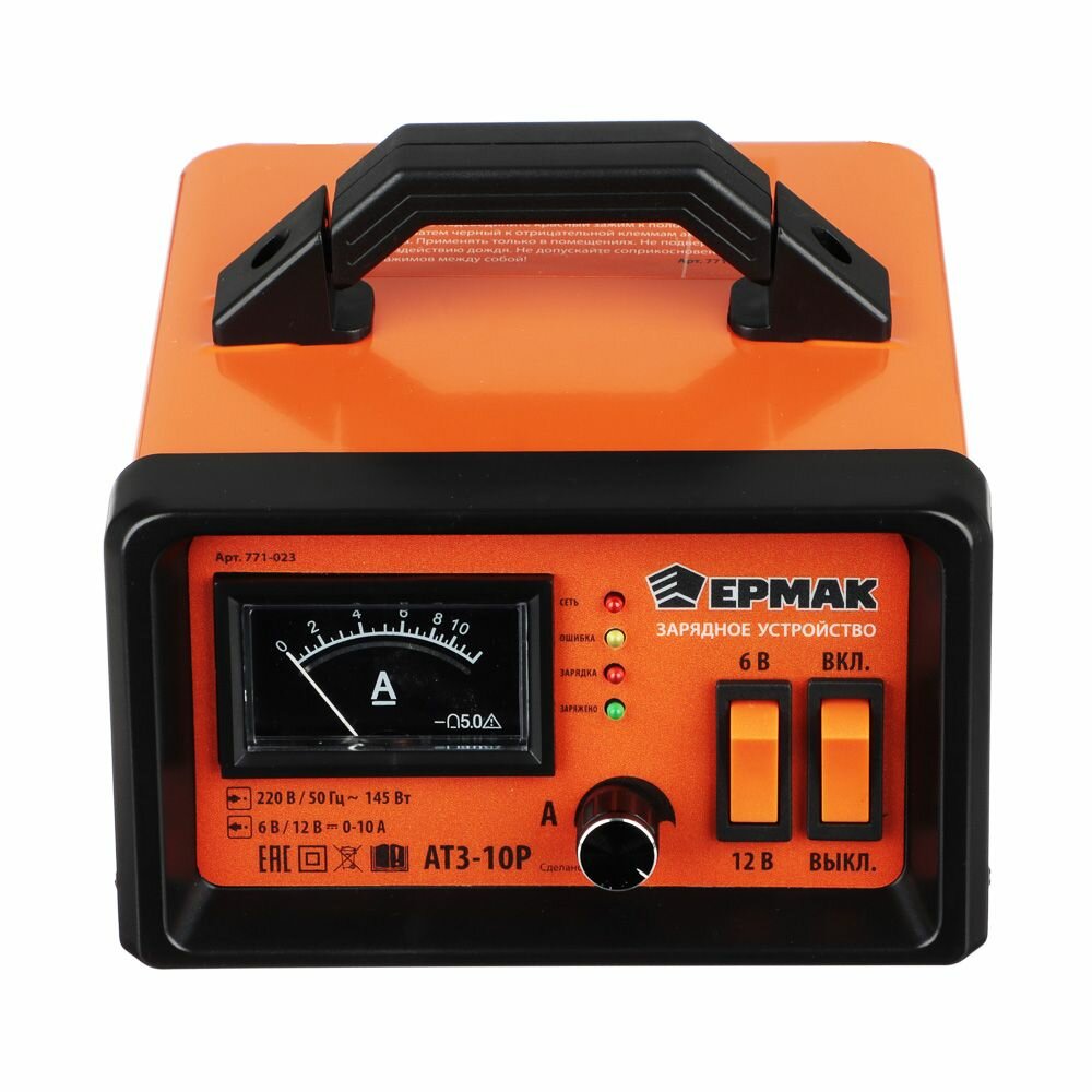 Ермак Зарядное устройство автоматическое АТЗ-10Р, 0-10A, 6В/12В, металл корпус, регул. тока
