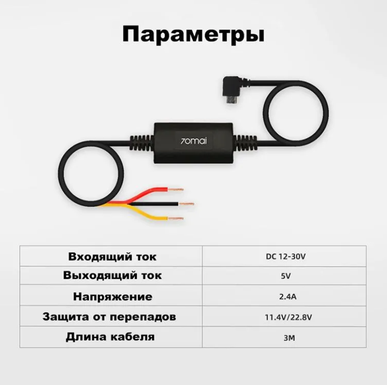 Кабель для видеорегистратора 70mai Hardware Kit (UP02) интересное: