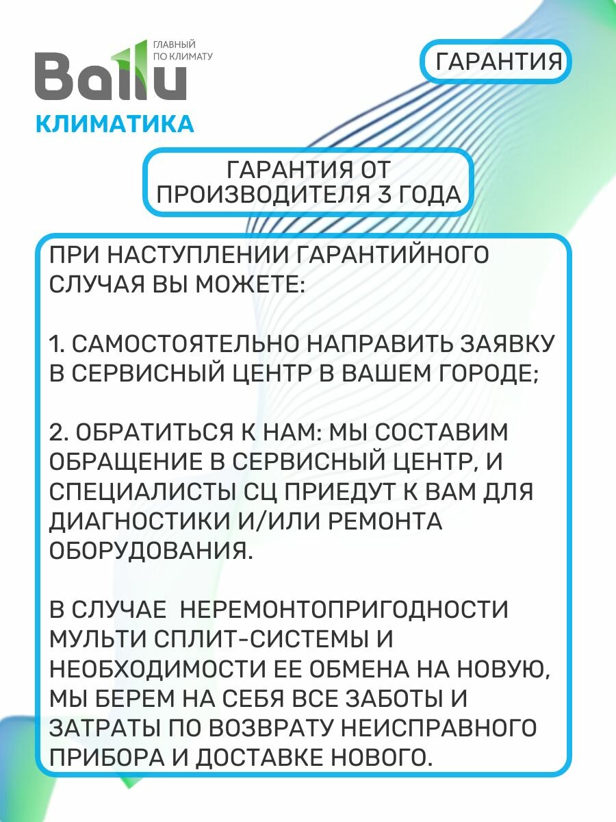 | Подробная комплектация | Блок наружный BALLU BA2OI-FM/out-14HN8/EU инверторной мульти сплит-системы - 1 шт., Блок внутренний BALLU BSUI-FM/in-07HN8/EU инверторной мульти сплит-системы - 2 шт., крепления для монтажа на стену (только для внутреннего блока), пульт ДУ - 2 шт., инструкция (руководство пользователя), гарантийный талон (в инструкции). |