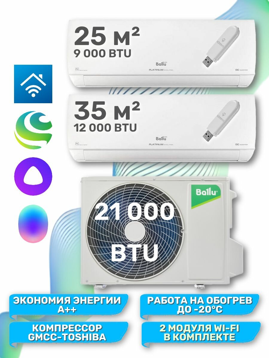 Купить Инверторная мульти сплит-система Ballu Platinum Evolution на 2 комнаты BSUI-FM/in-09+12 HN8/EU BA3OI-FM/out-21HN8/EU