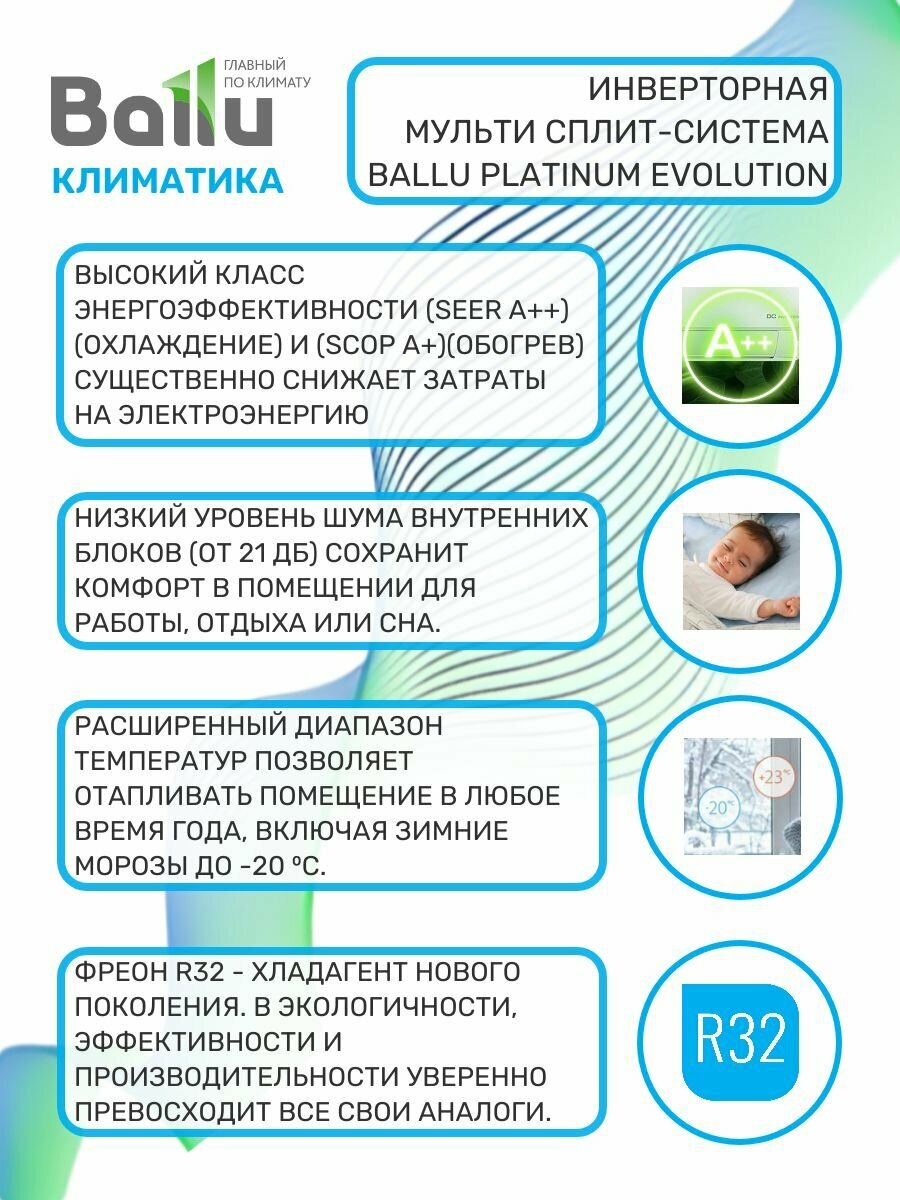 СохранитьИнверторная мульти сплит-система Ballu Platinum Evolution на 2 комнаты BSUI-FM/in-09+12 HN8/EU BA3OI-FM/out-21HN8/EU интересное: