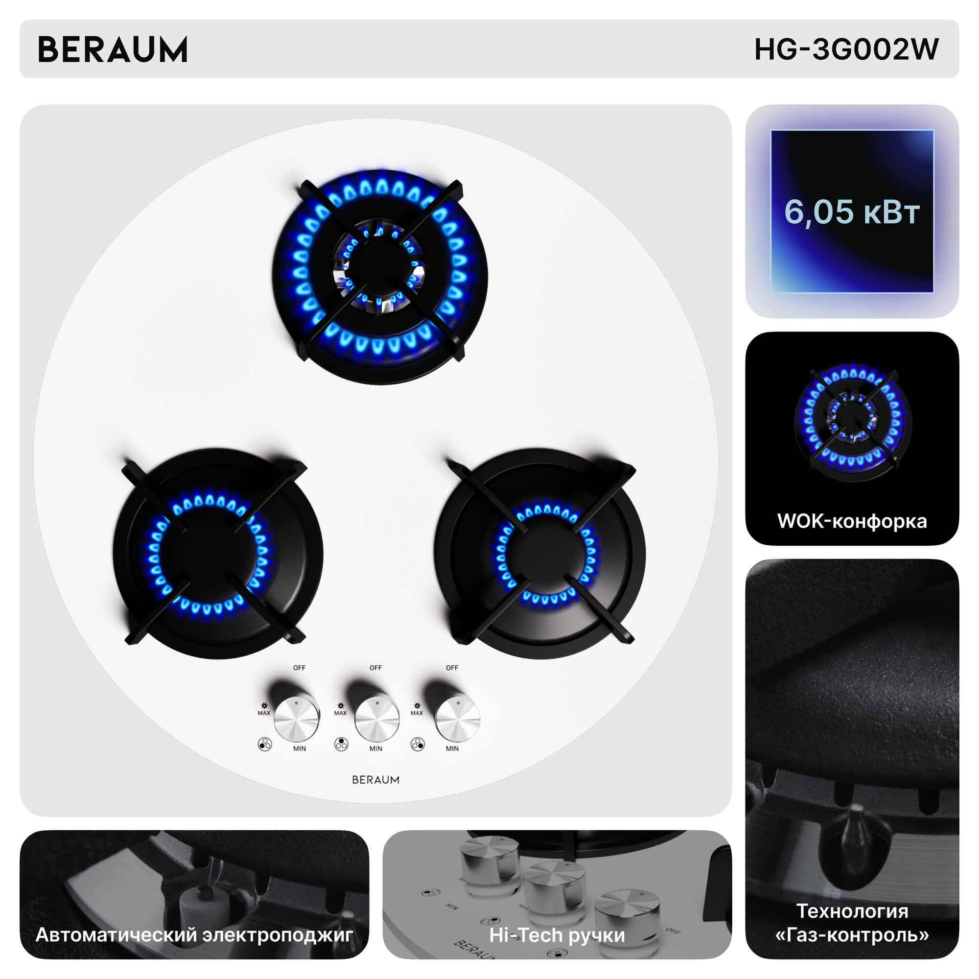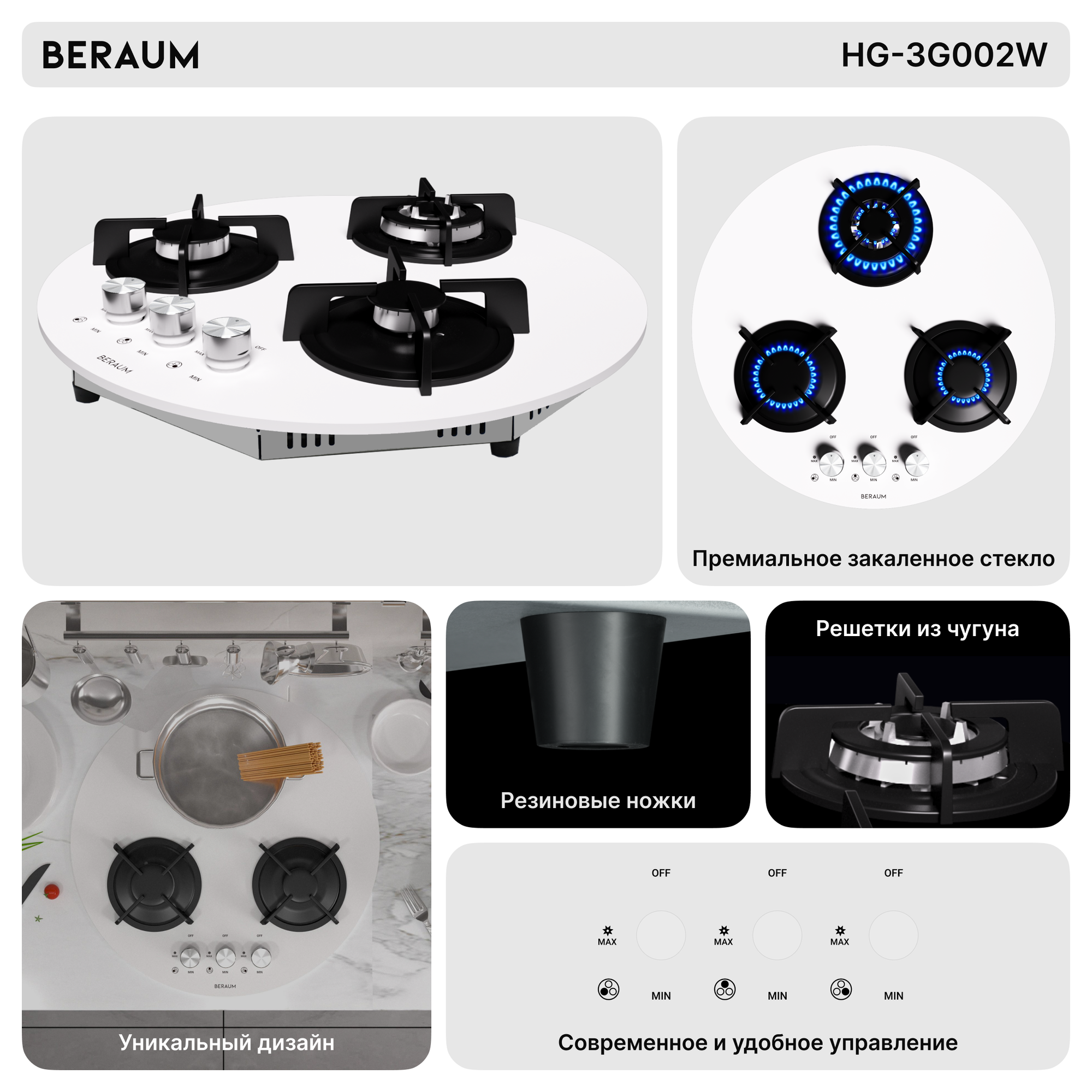 Газовая варочная панель Beraum HG-3G002W с газ-контролем, круглая интересное: