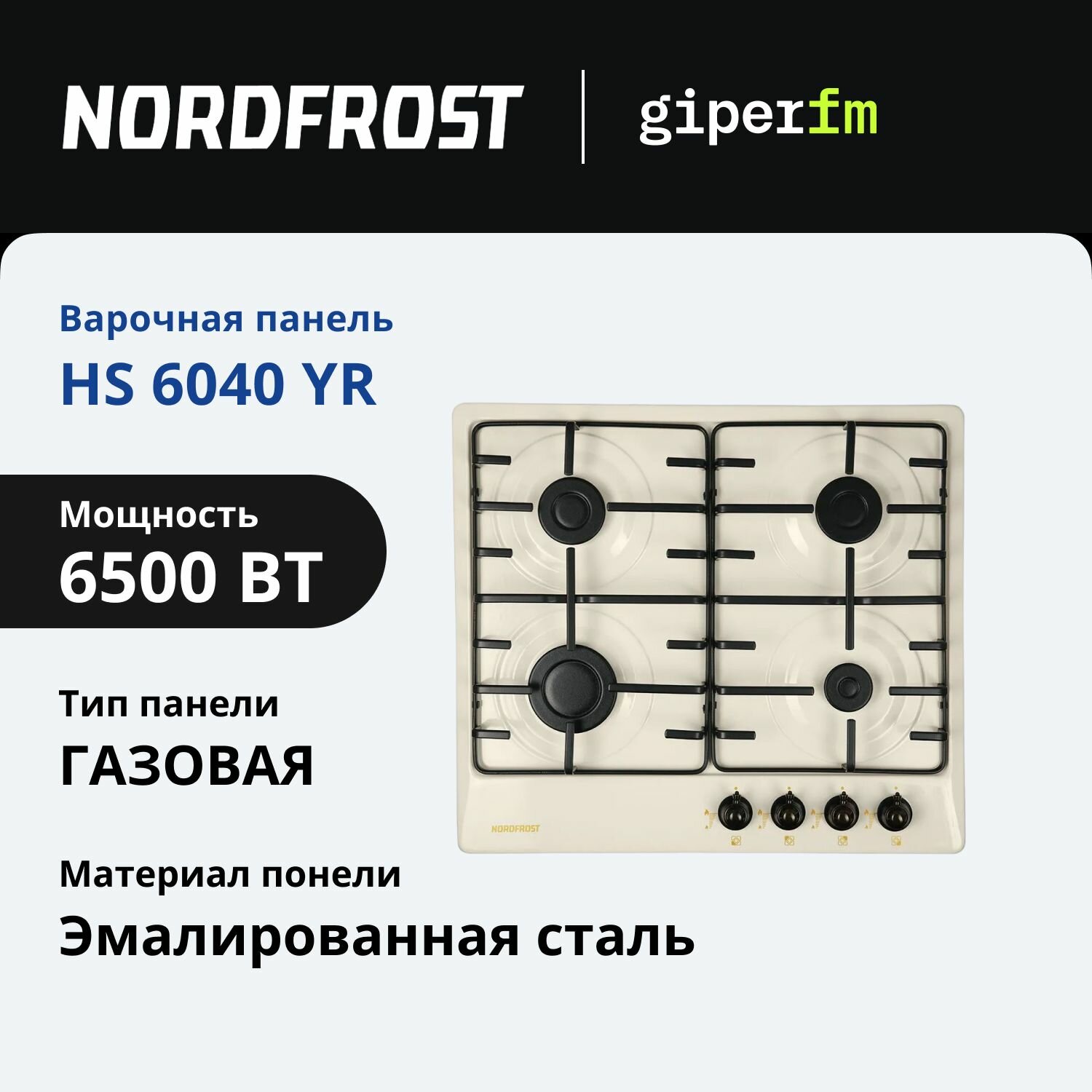 Газовая варочная поверхность NORDFROST HS 6040 YR, бежевая эмаль ретро