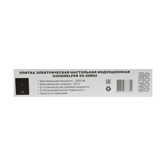 GOODHELPER Плитка индукционная GOODHELPER ES-20W02, 1 конфорка, 2000 Вт, чёрная