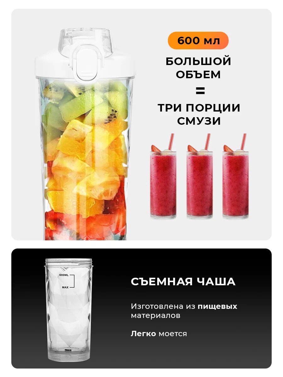 Портативный мини блендер для смузи и коктейлей белый интересное: