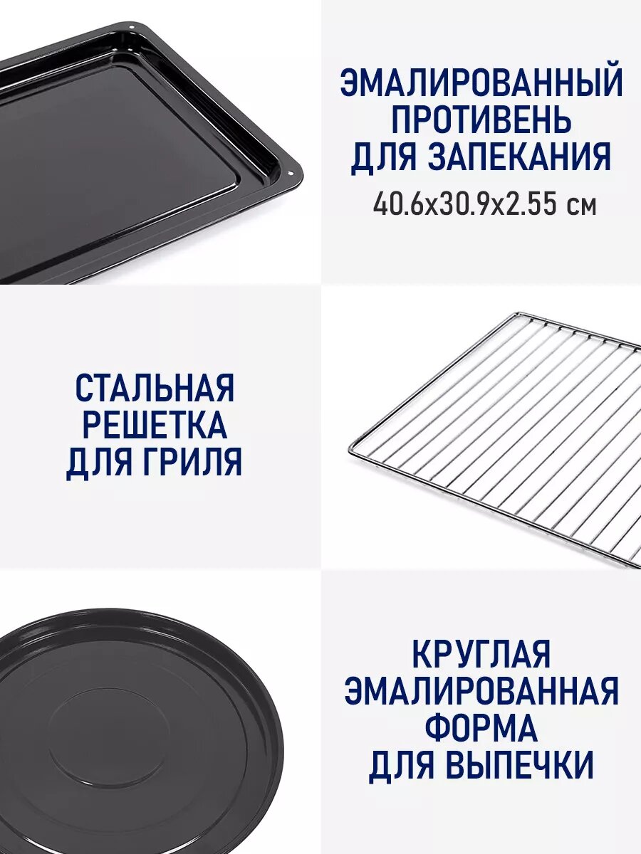 | В комплекте | вертел, держатель для противня/решётки, круглый противень, противень, решётка |