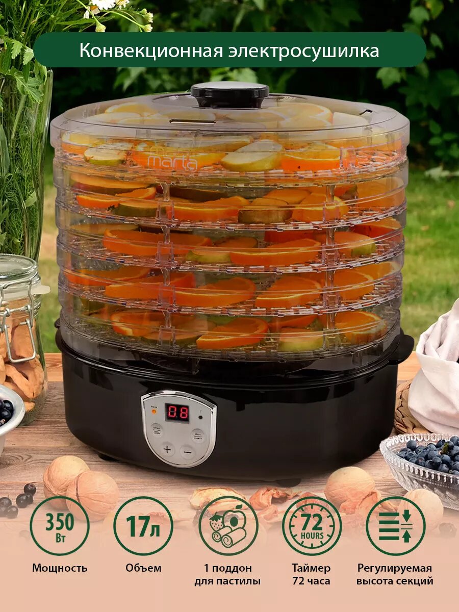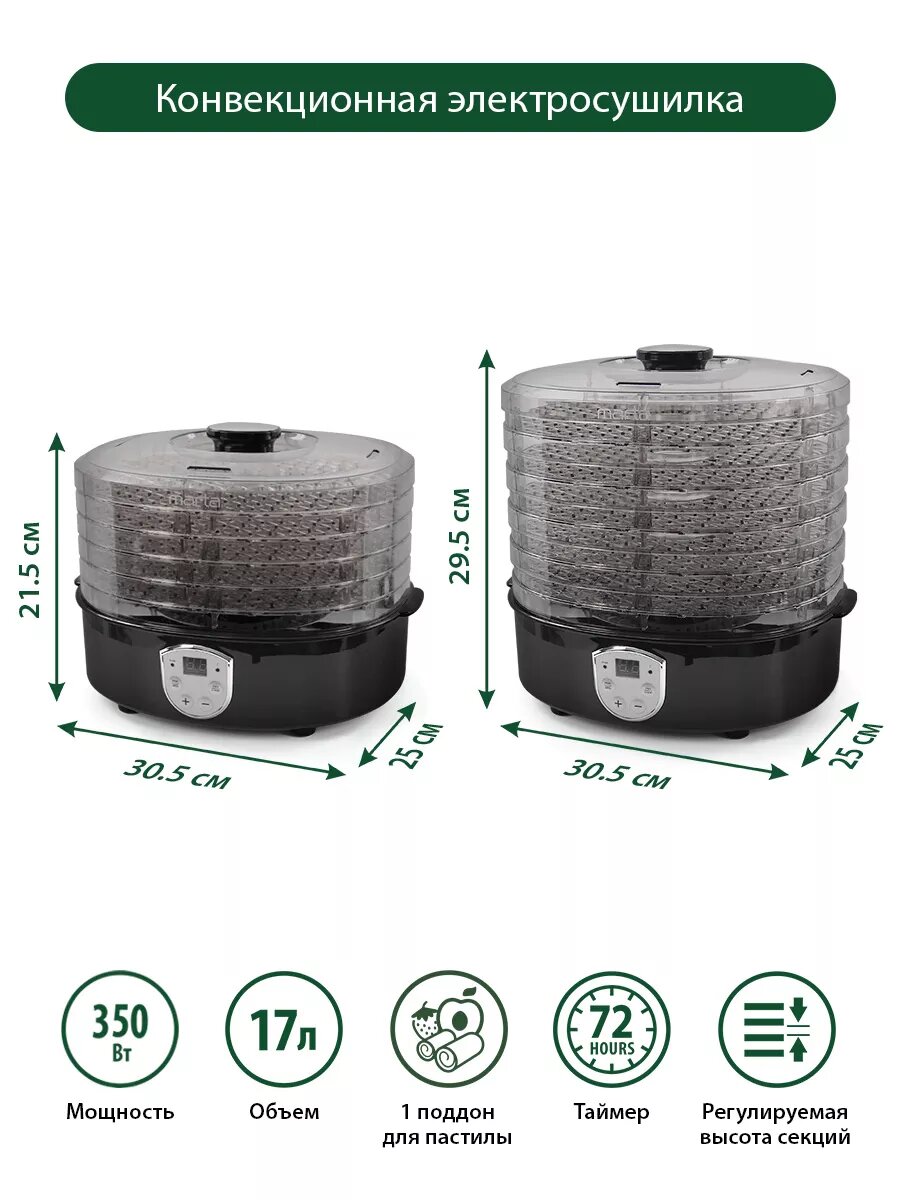 MARTA MT-1876 9 поддонов {6+3} коричневый оникс сушилка д/фруктов,овощей