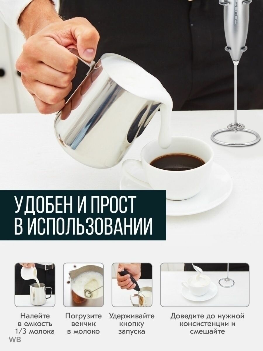 Капучинатор, вспениватель для молока и сливок ручной, венчик для латте, Мини-миксер Серибристый интересное: