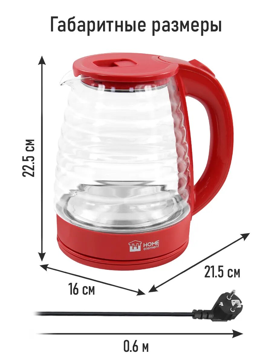 Год назад на даче сгорел чайник. не хотел особо сильно вкладываться и купил самый дешевый в днс. Спустя какое то время сын вырвал крышку, а спустя еще месяц чайник вообще перестал работать. Начал искать в интернете хороший и не дорогой чайник. Хотел минималистический чайник, без подсветки. На яндекс маркете наткнулся на Home Element HE-KT-178. Почитав отзывы - решил купить. Пользуемся уже 3 месяца. Чайник радует прочностью конструкции и блокировкой включения без воды ( дети не внимательные ). За свою цену - хороший чайник, могу советовать.