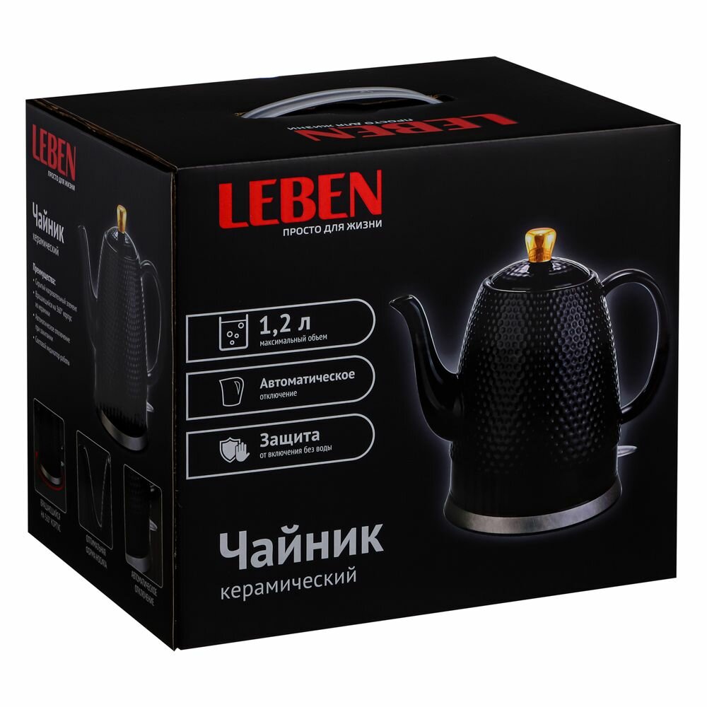 Купить Чайник электрический керамический 1,2 л LEBEN, черный