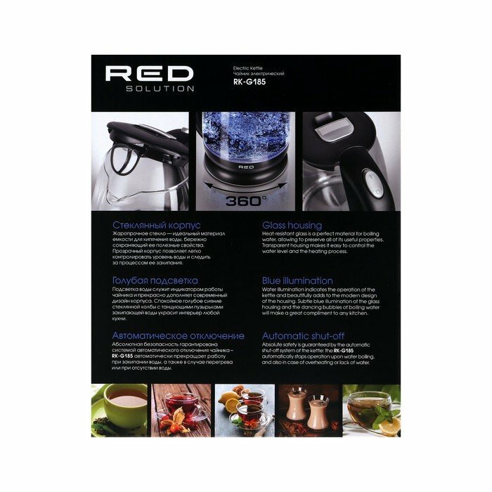 Чайник электрический Red Solution RK-G185 1.7л. 2200Вт черный (корпус: стекло) RK-G185