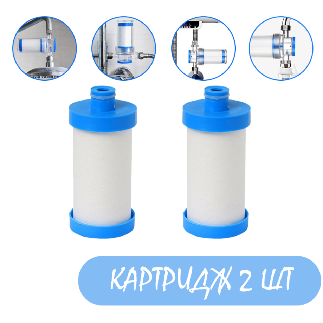 Сменный картридж Фильтра для проточной воды, душа, бытовых приборов, на кран Защита кожи и волос от хлора, примесей и тяжелых металлов 2 шт