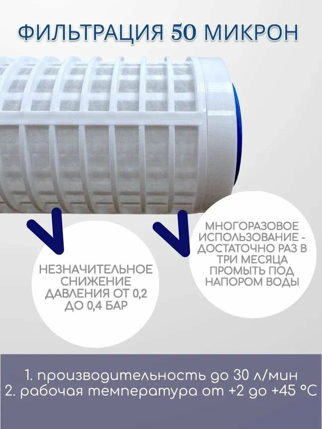 Картридж из нейлоновой сетки RL 10SL NASHFILTER для механической очистки воды 50 мкм, Slim Line 10, Подходит для Аквафор / Барьер / Гейзер и др. интересное: