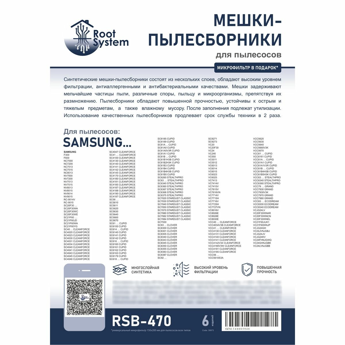 Мешки для пылесоса SAMSUNG, тип: VP-77, одноразовые синтетические пылесборники RootSystem SM1(6), комплект 5 шт. + фильтр интересное: