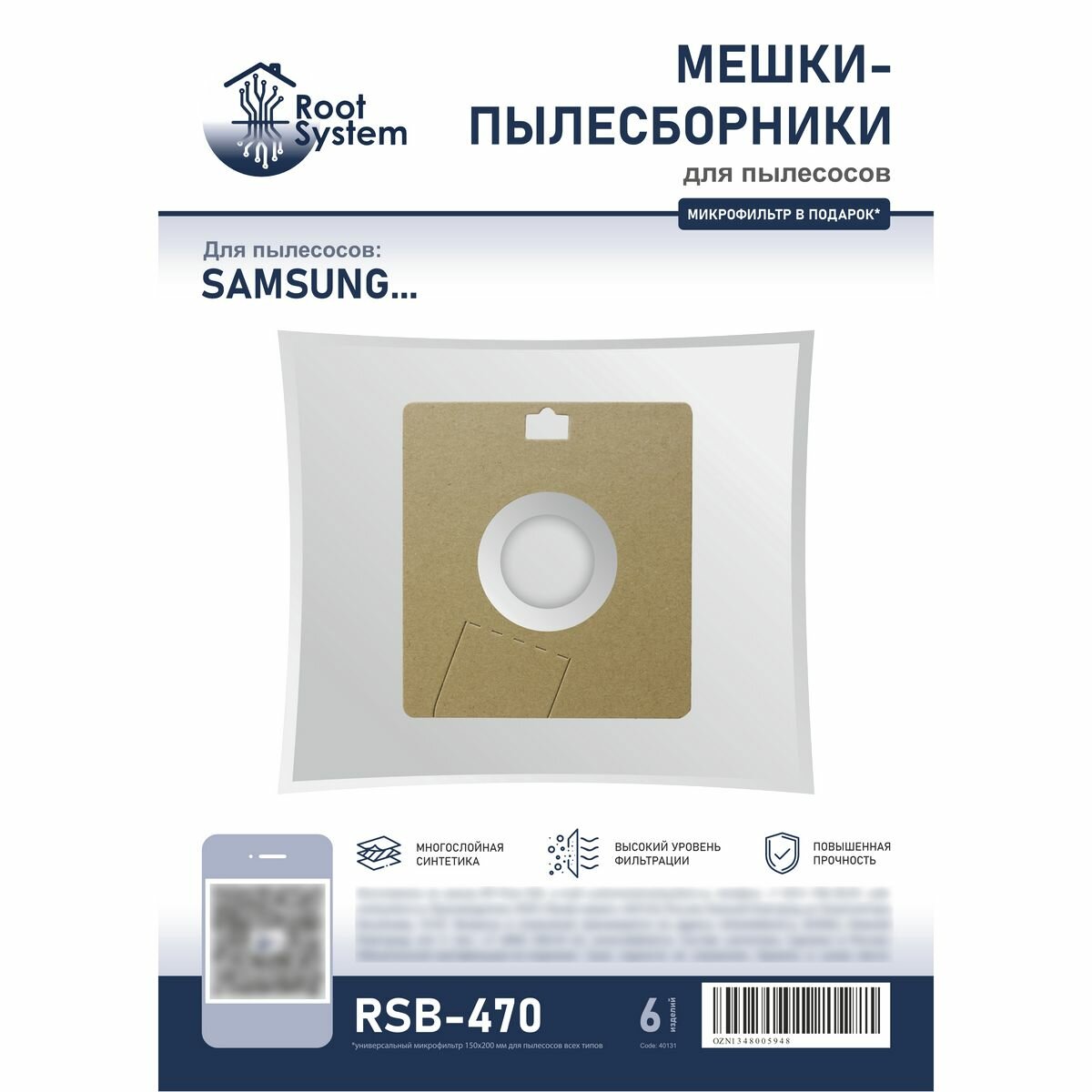 Купить Мешки для пылесоса SAMSUNG, тип: VP-77, одноразовые синтетические пылесборники RootSystem SM1(6), комплект 5 шт. + фильтр