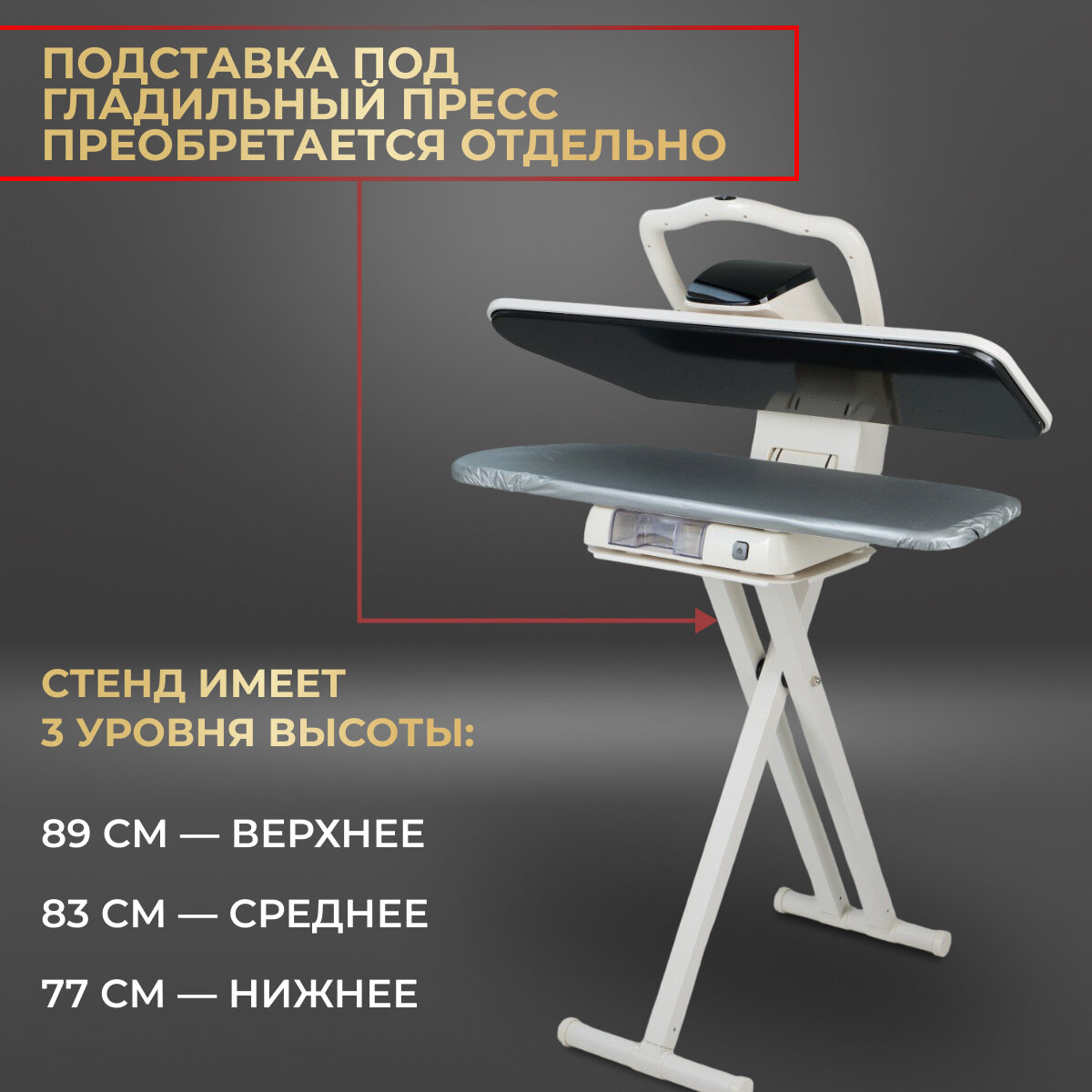 | Дополнительная информация | Подставка под гладильный пресс идет в комплекте |