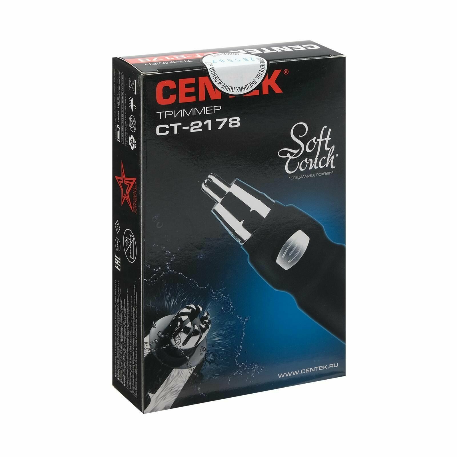 Триммер CENTEK CT-2178/ черный/хром/ 3в1/ нос/ брови/ уши/ Soft-touch/ питание 1хАА