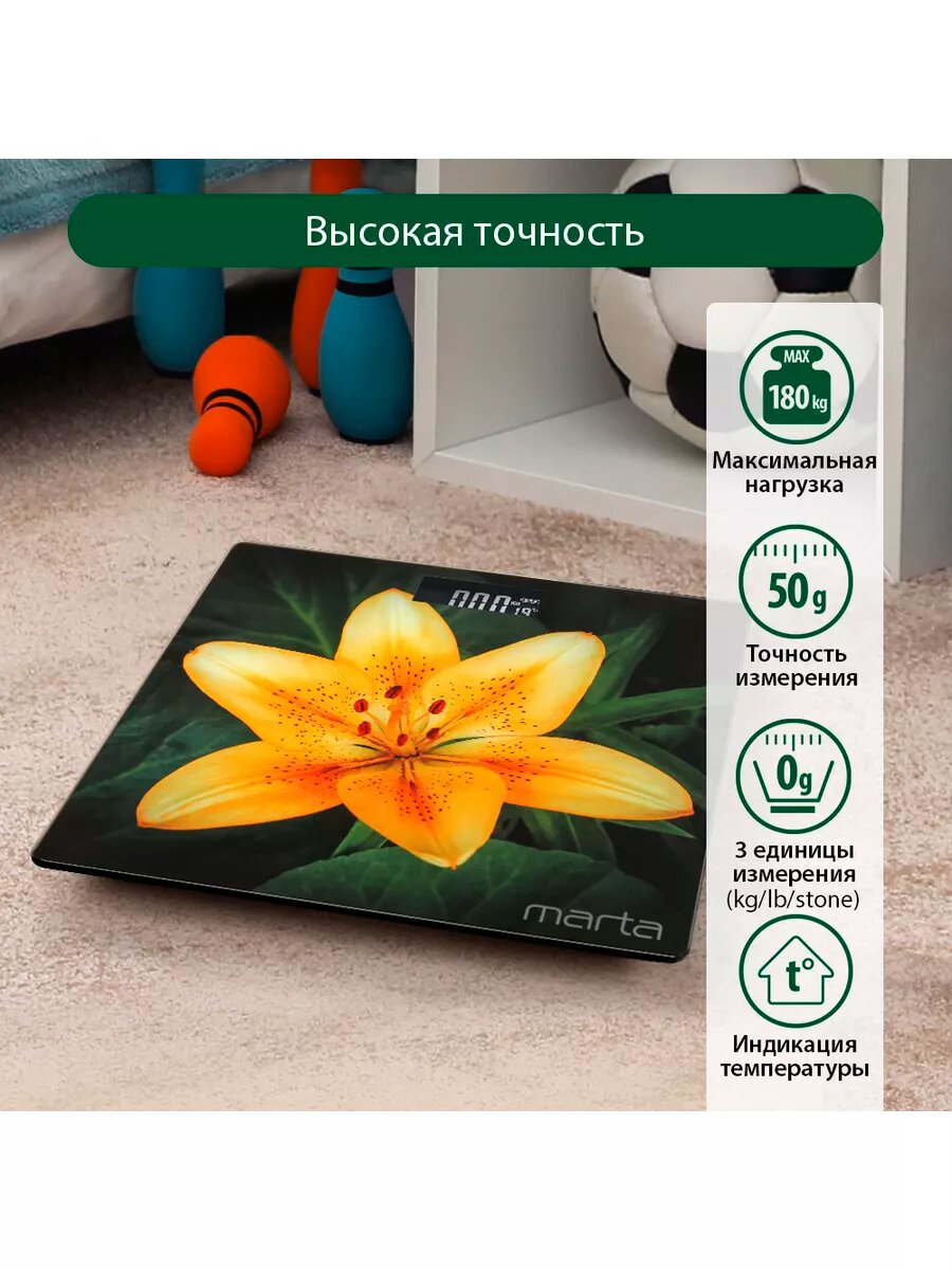 Весы напольные электронные со встроенным термометром MARTA MT-SC3602 розовый мрамор