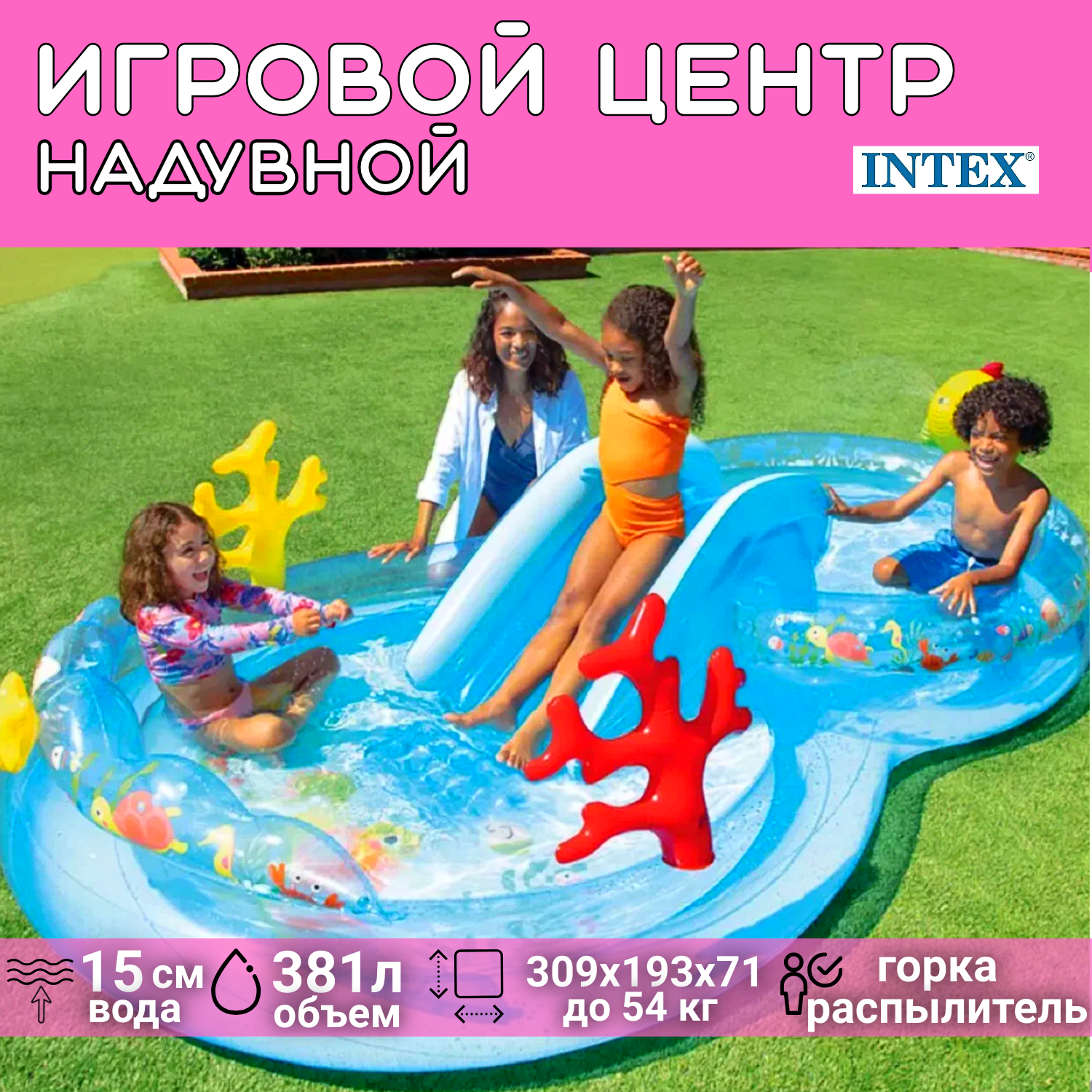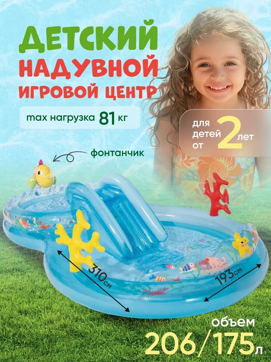 INTEX Игровой центр Морские Глубины 310*193*71 см, с горкой и фонтаном, клапан 56143