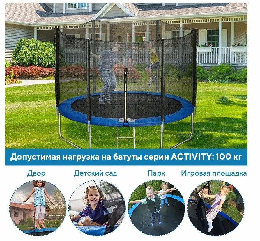 | Состав набора | батут, стойки для защитной сети, защитная сеть |
