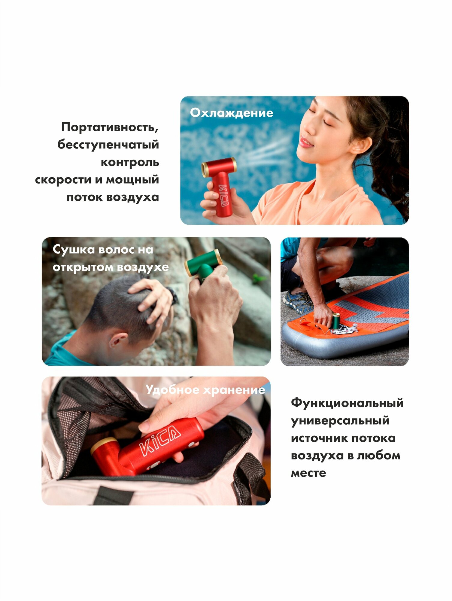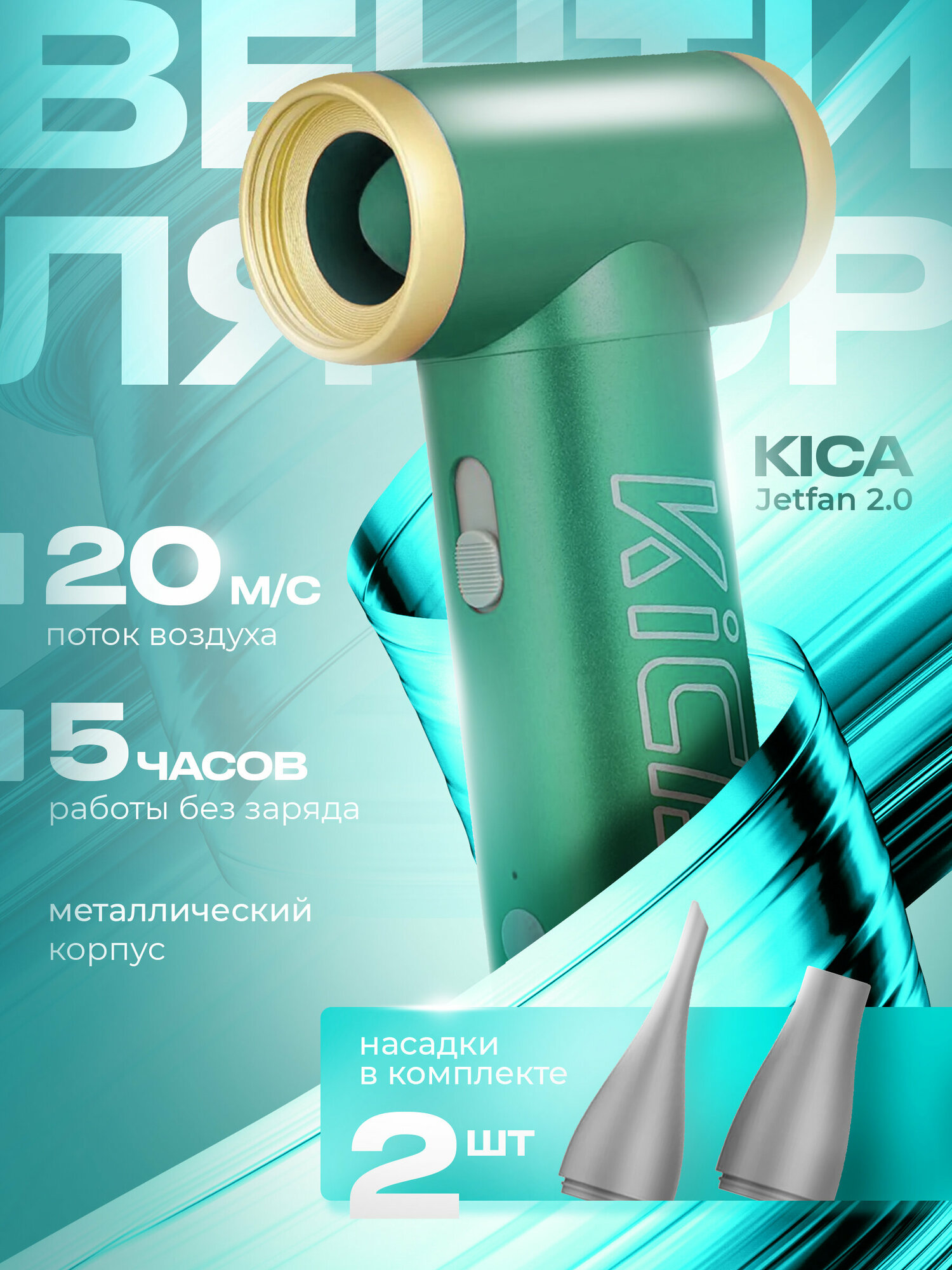 Беспроводная аккумуляторная воздуходувка для ПК, автомобиля, компьютера KICA Jet Fan 2 с насадками
