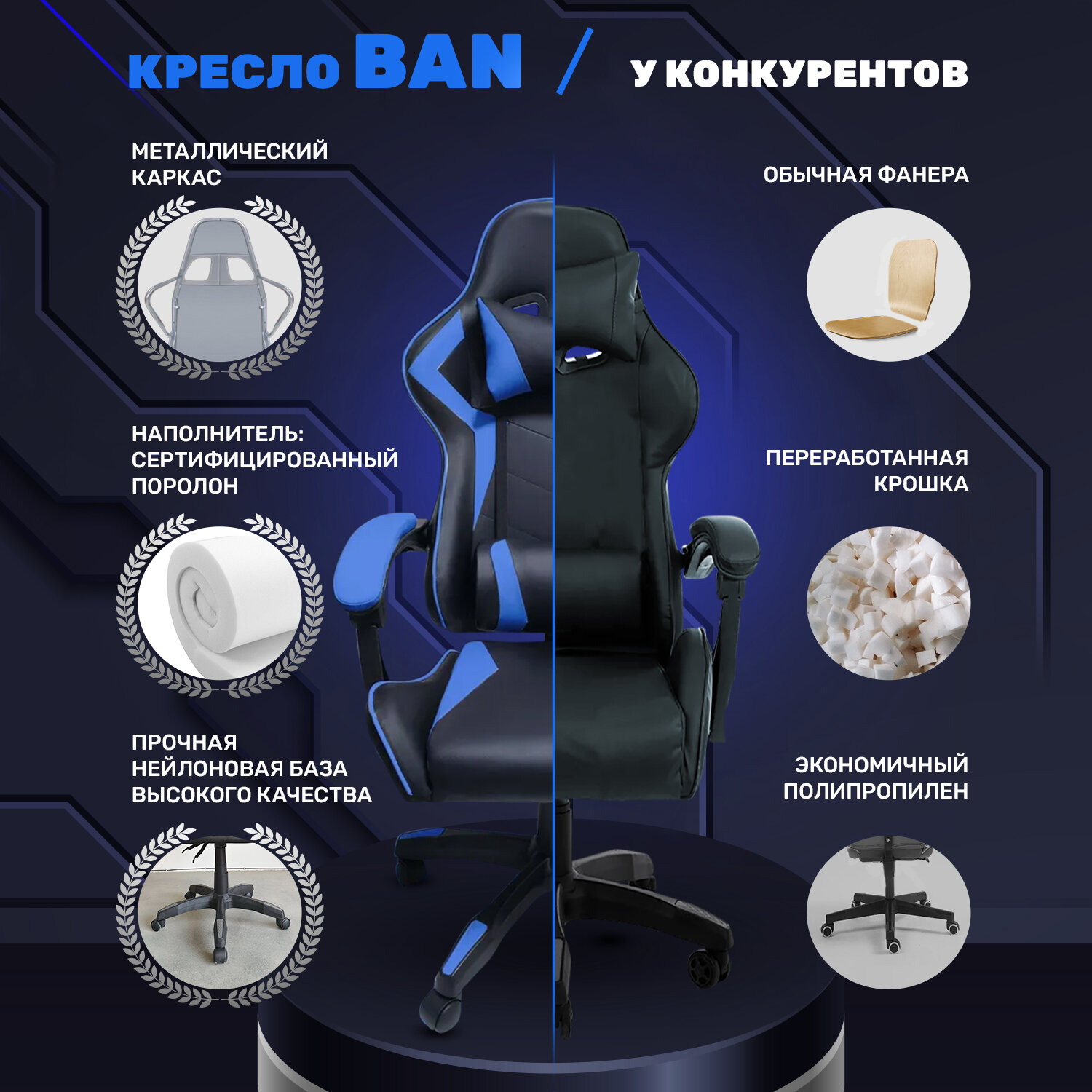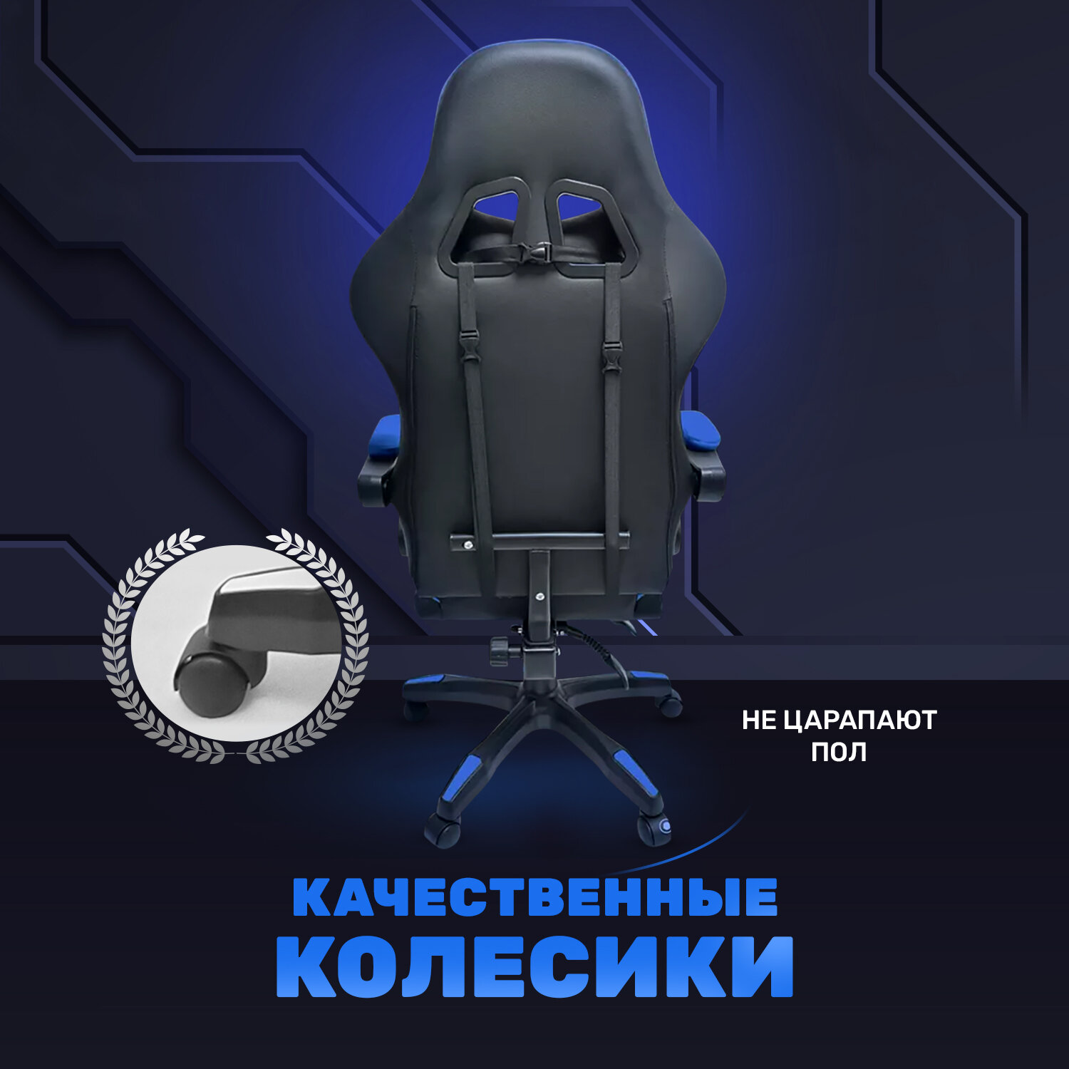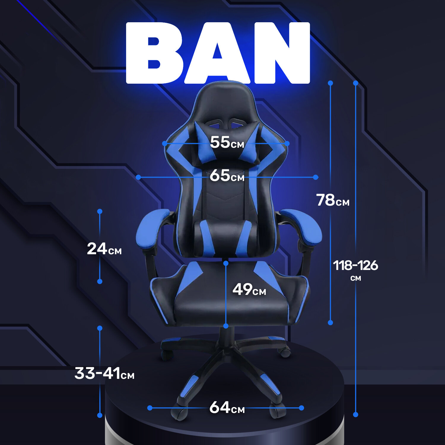 Купить Игровое геймерское кресло на колесиках BYROOM Game BAN blue HS-5010-BL кожаное крутящееся. Компьютерный стул для геймера с ортопедической высокой спинкой для игр и работы на пк