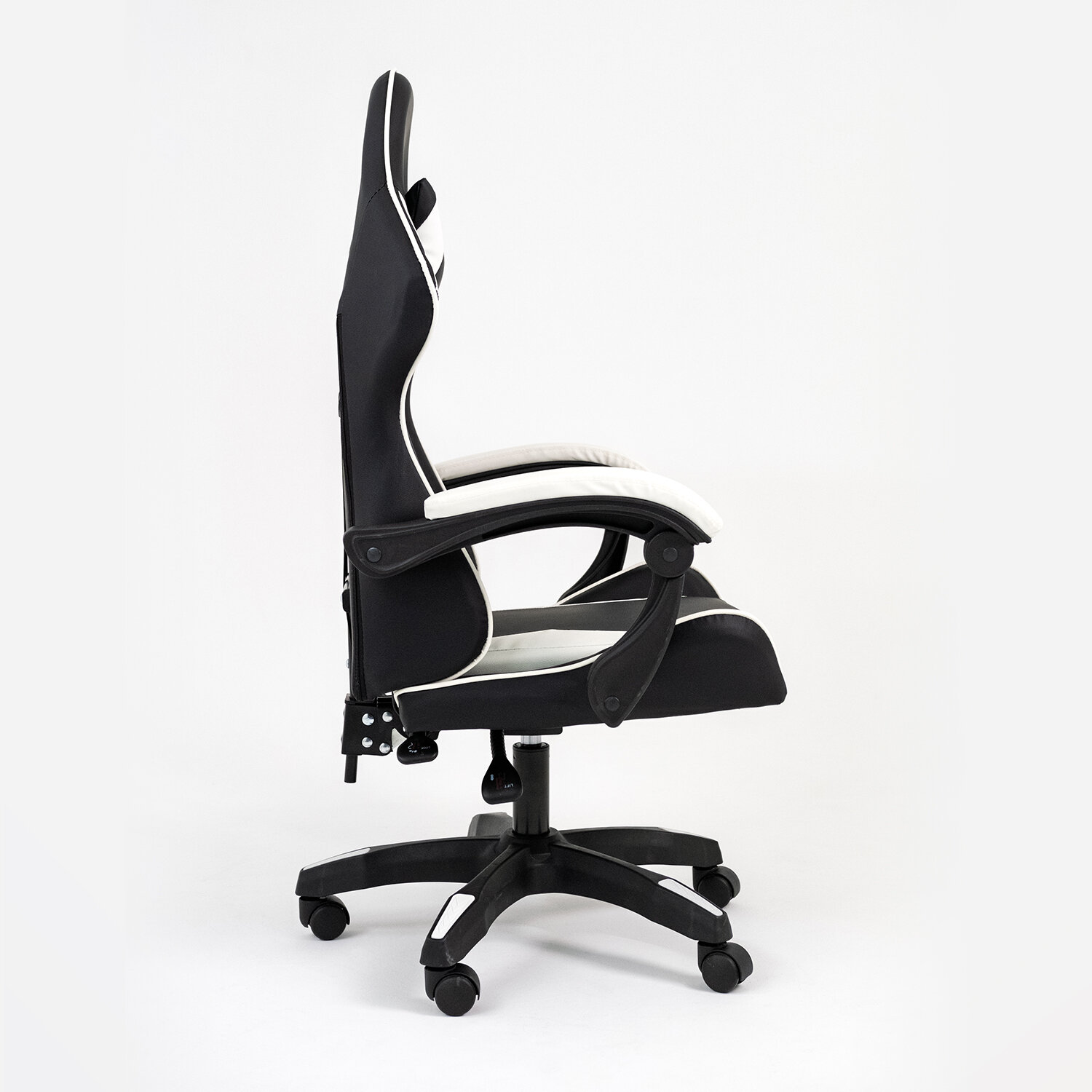 Игровое геймерское кресло на колесиках BYROOM Game BAN white HS-5010-W кожаное крутящееся. Компьютерный стул для геймера с ортопедической высокой спинкой для игр и работы на пк