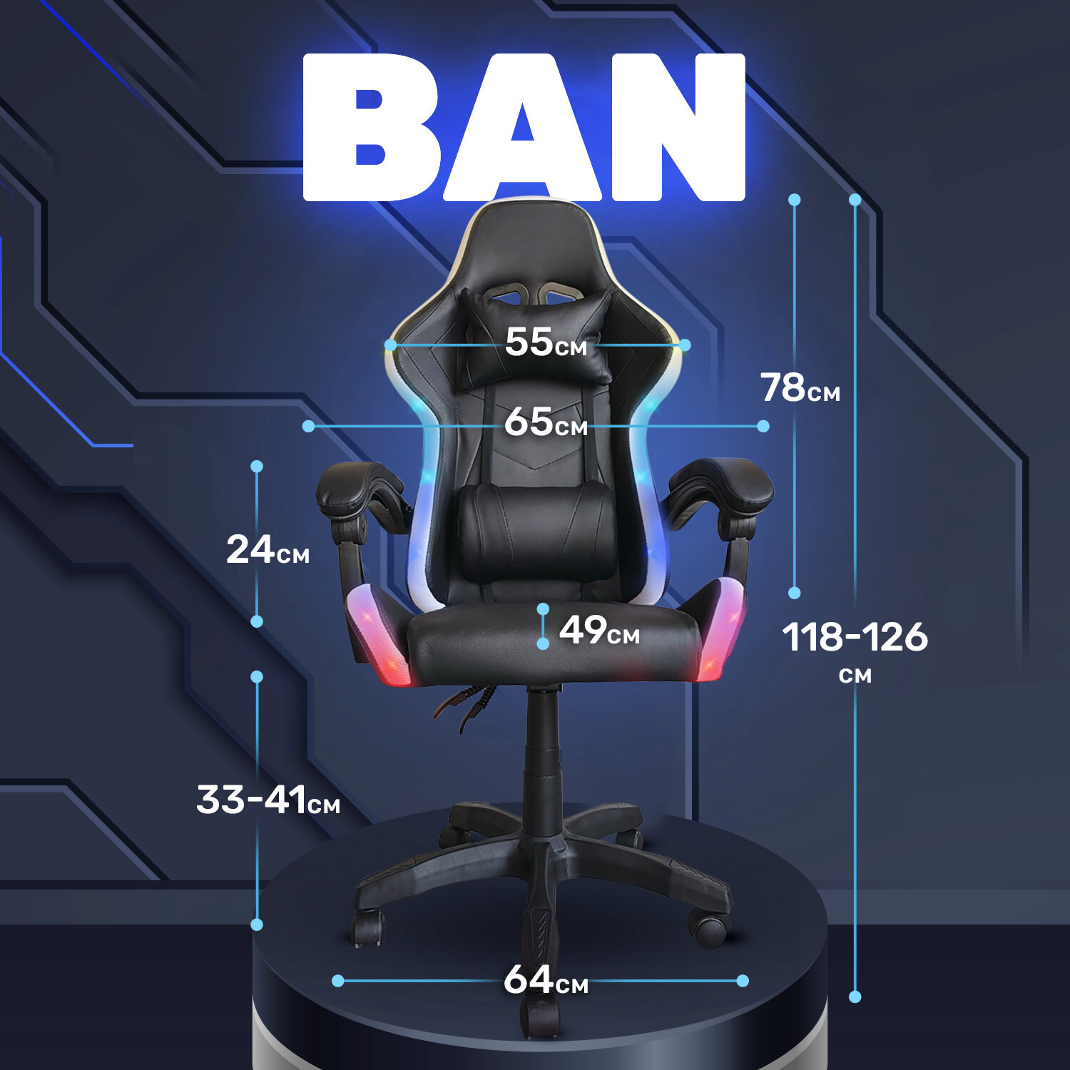 Купить Игровое геймерское кресло на колесиках BYROOM Game BAN RGB Black HS-5010-B-RGB кожаное крутящееся. Компьютерный стул для геймера с ортопедической высокой спинкой для игр и работы на пк