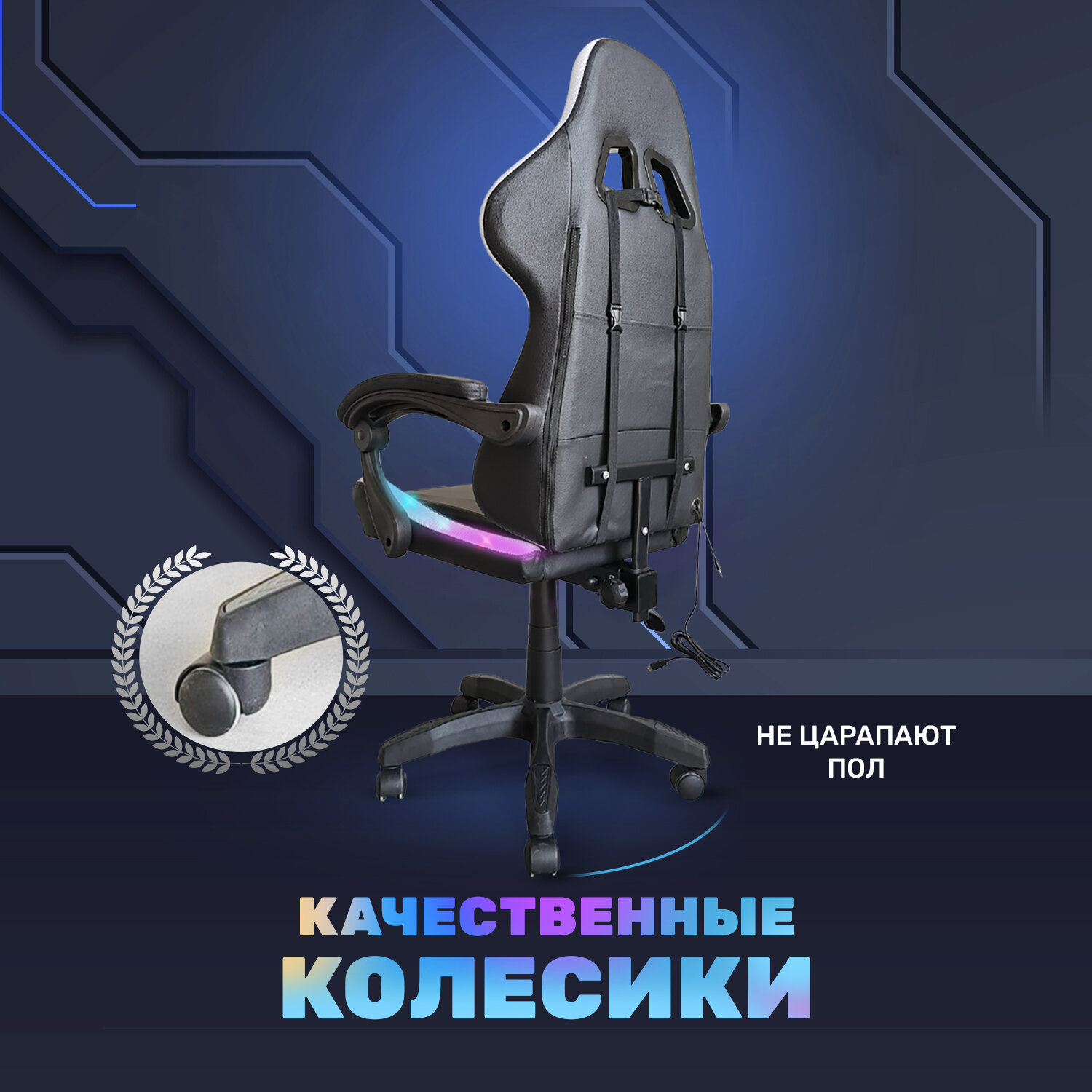 СохранитьИгровое геймерское кресло на колесиках BYROOM Game BAN RGB Black HS-5010-B-RGB кожаное крутящееся. Компьютерный стул для геймера с ортопедической высокой спинкой для игр и работы на пк интересное: