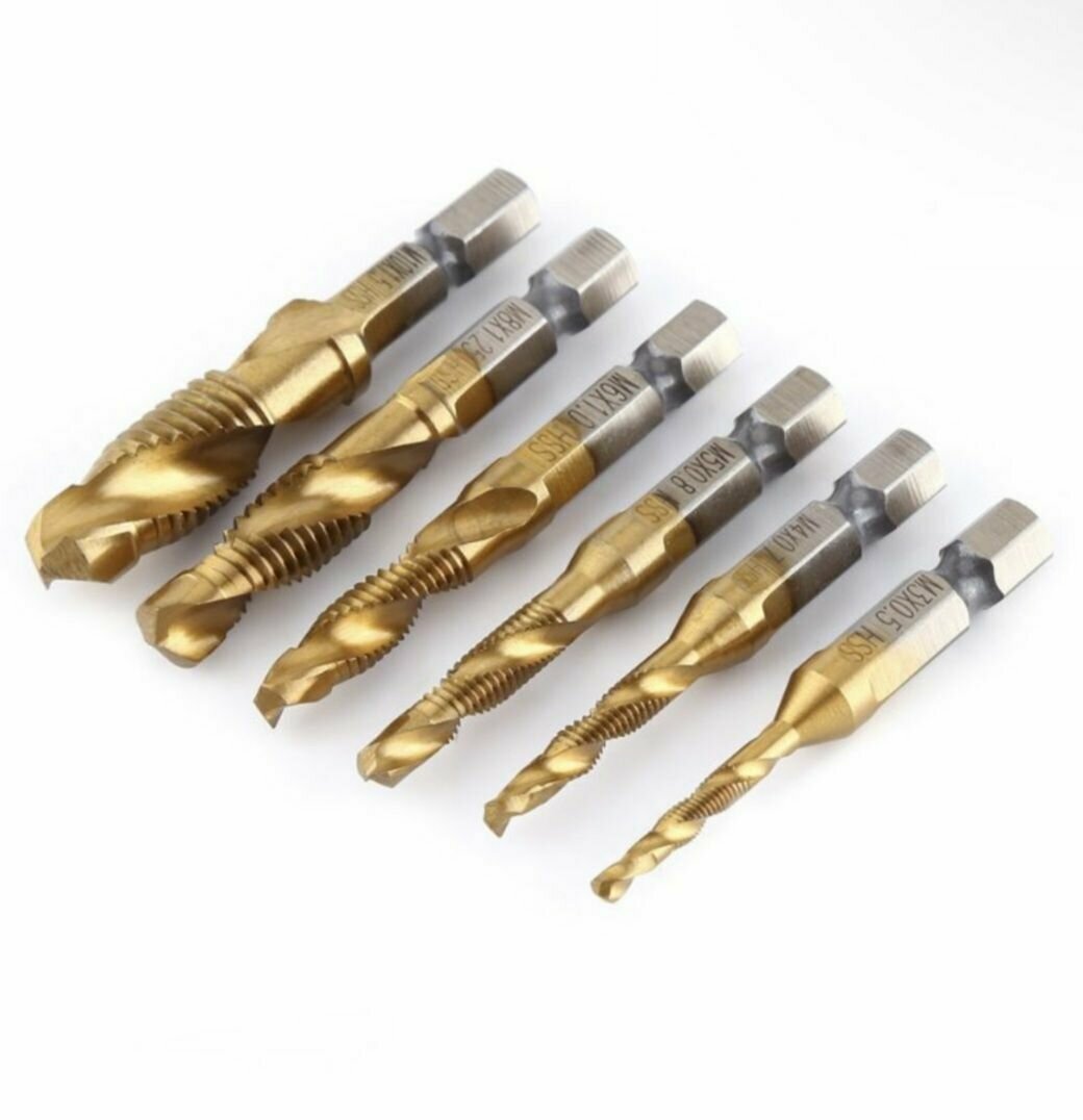 Купить Набор сверл-метчиков с титановым покрытием из быстрорежущей стали, м3,4,5,6,8,10 6шт