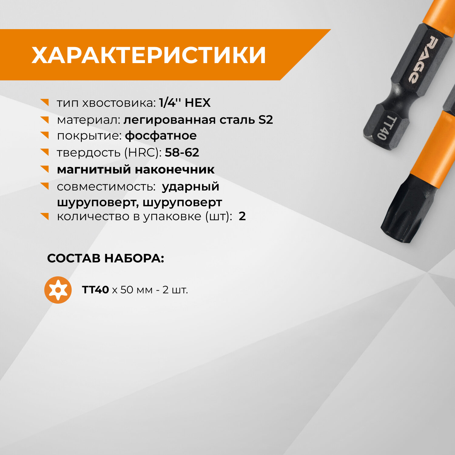 RAGE by VIRA Набор бит торсионных torx t40 s2x50 мм 2шт. 554250 интересное: