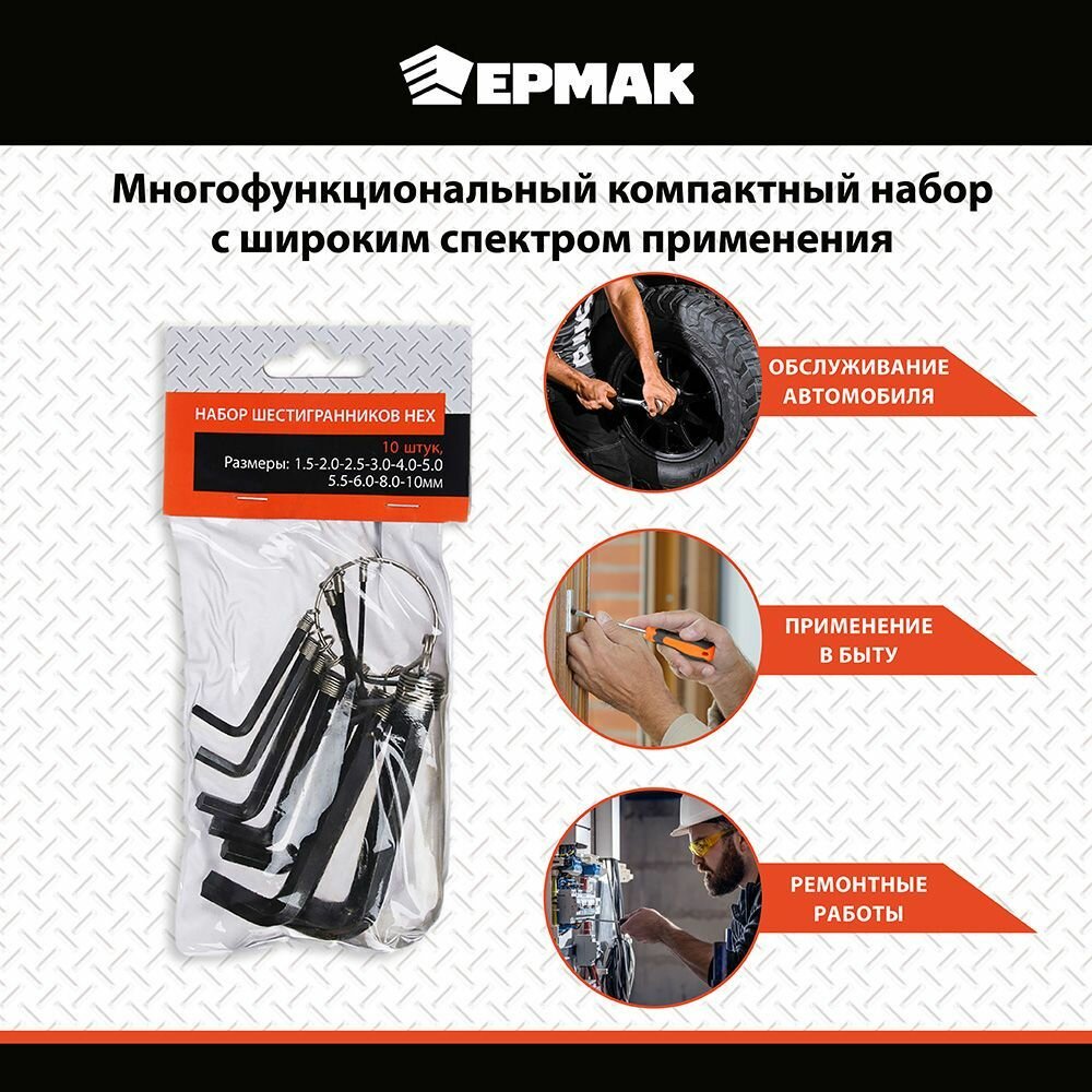 Набор шестигранников HEX 1.5 - 10мм, 10шт. в пакете JF2296B интересное: