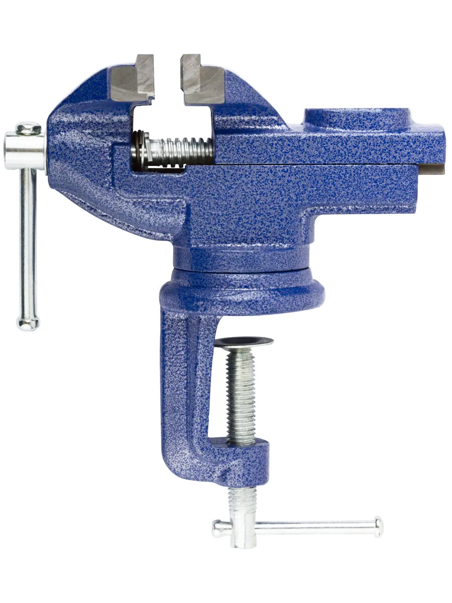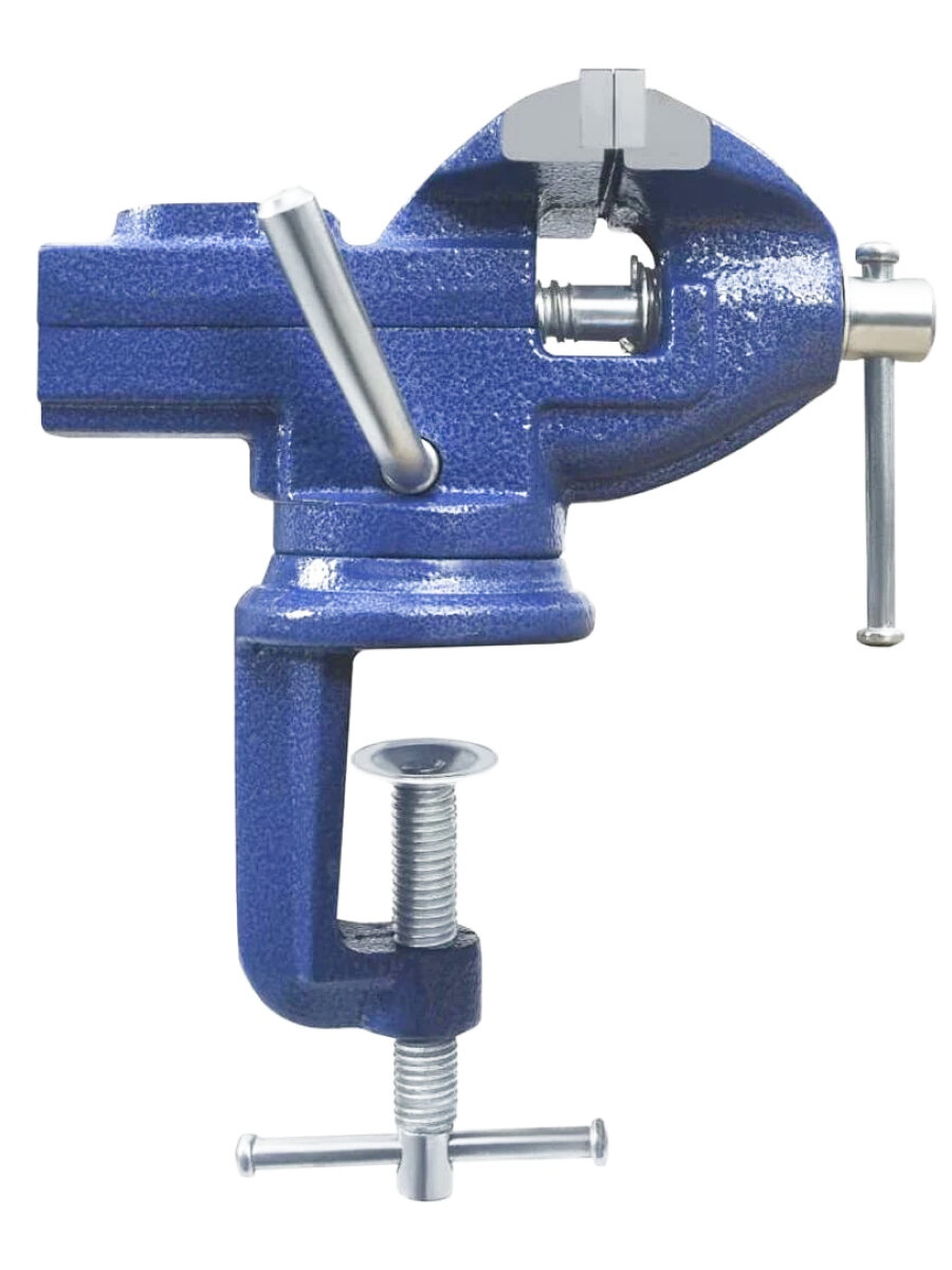 Настольные усиленные тиски с наковальней 70 мм поворотные синие