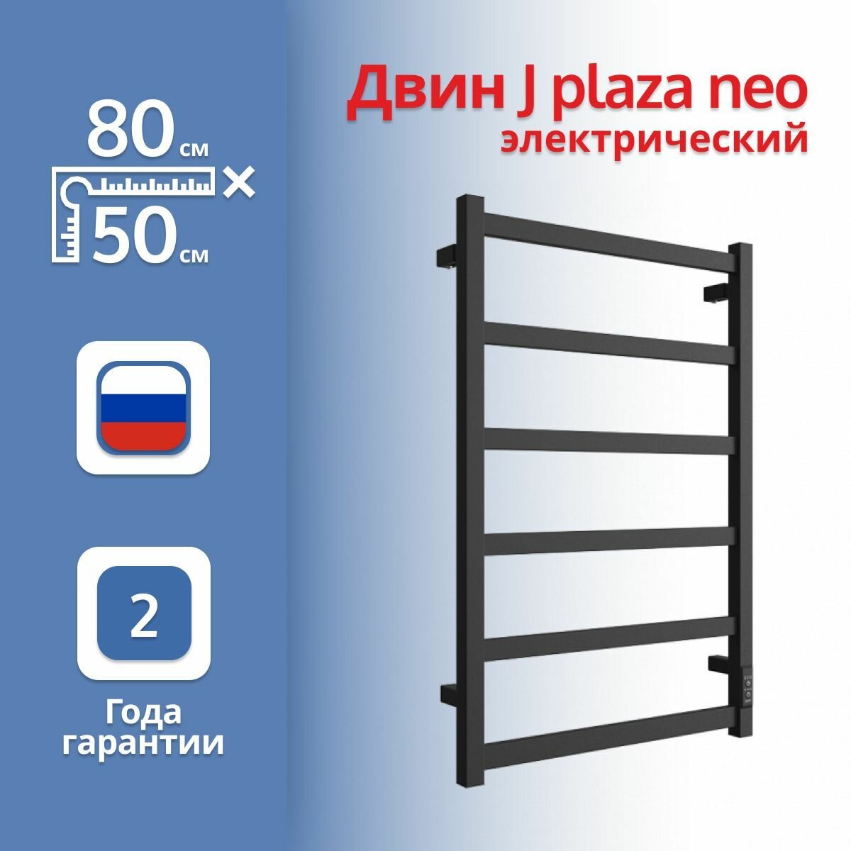 Купить Полотенцесушитель электрический Двин "J" plaza neo 80х50 К диммер квадрат, черный матовый