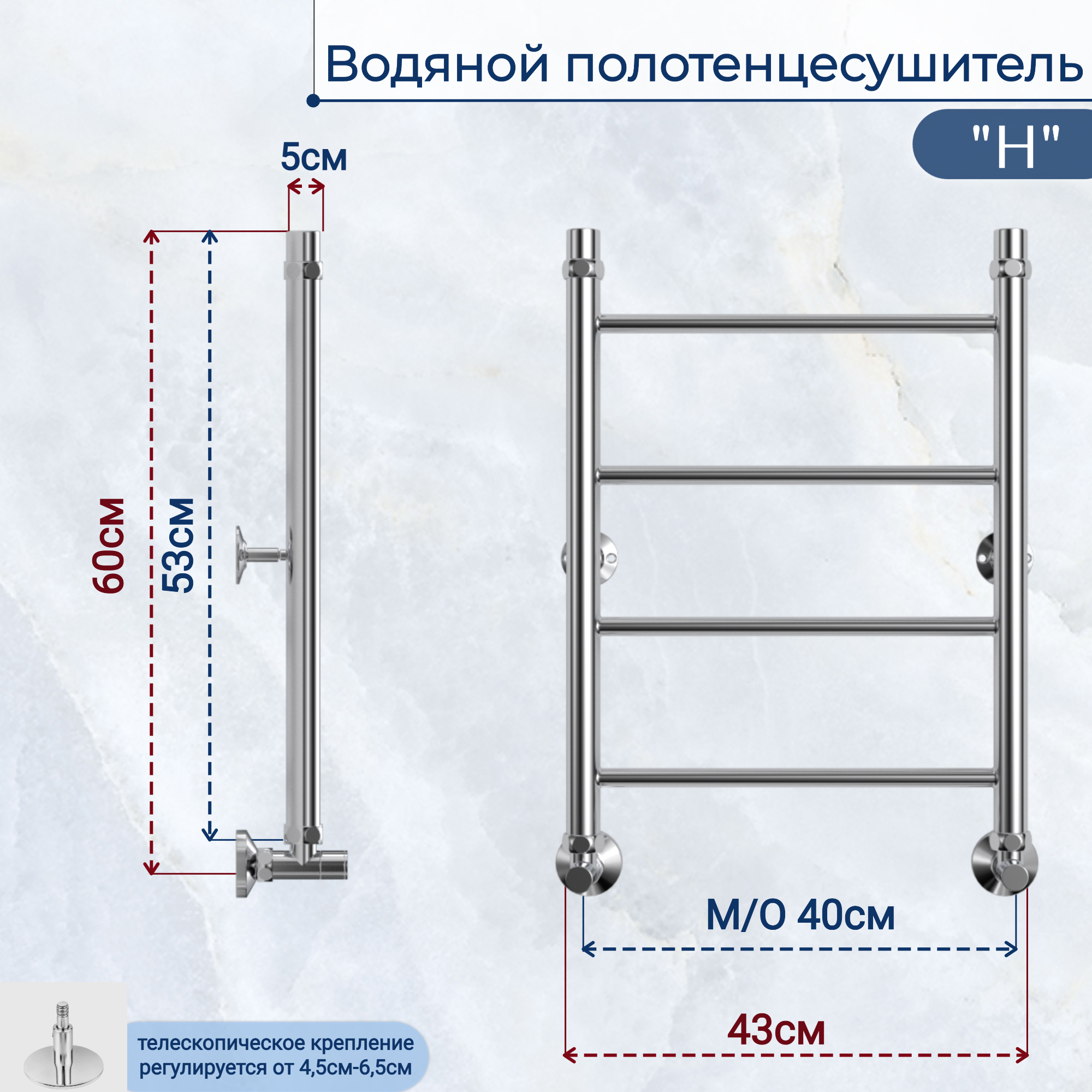 Водяной полотенцесушитель Юрма "H" 60/40 см, нержавеющая сталь AISI- 304 интересное: