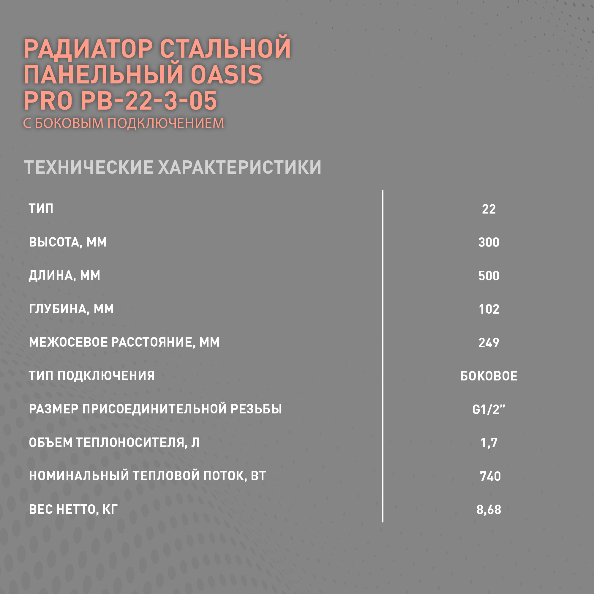 Радиатор Oasis Pro PB 22-3-05, панельный интересное: