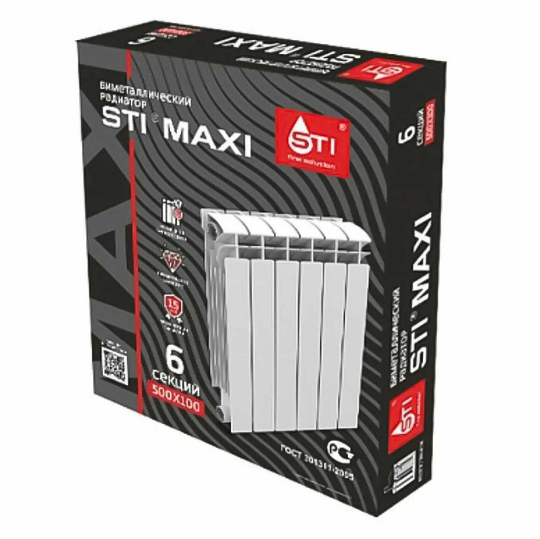 Радиатор биметалл, 500х100 мм, STI, Maxi, 6 секций