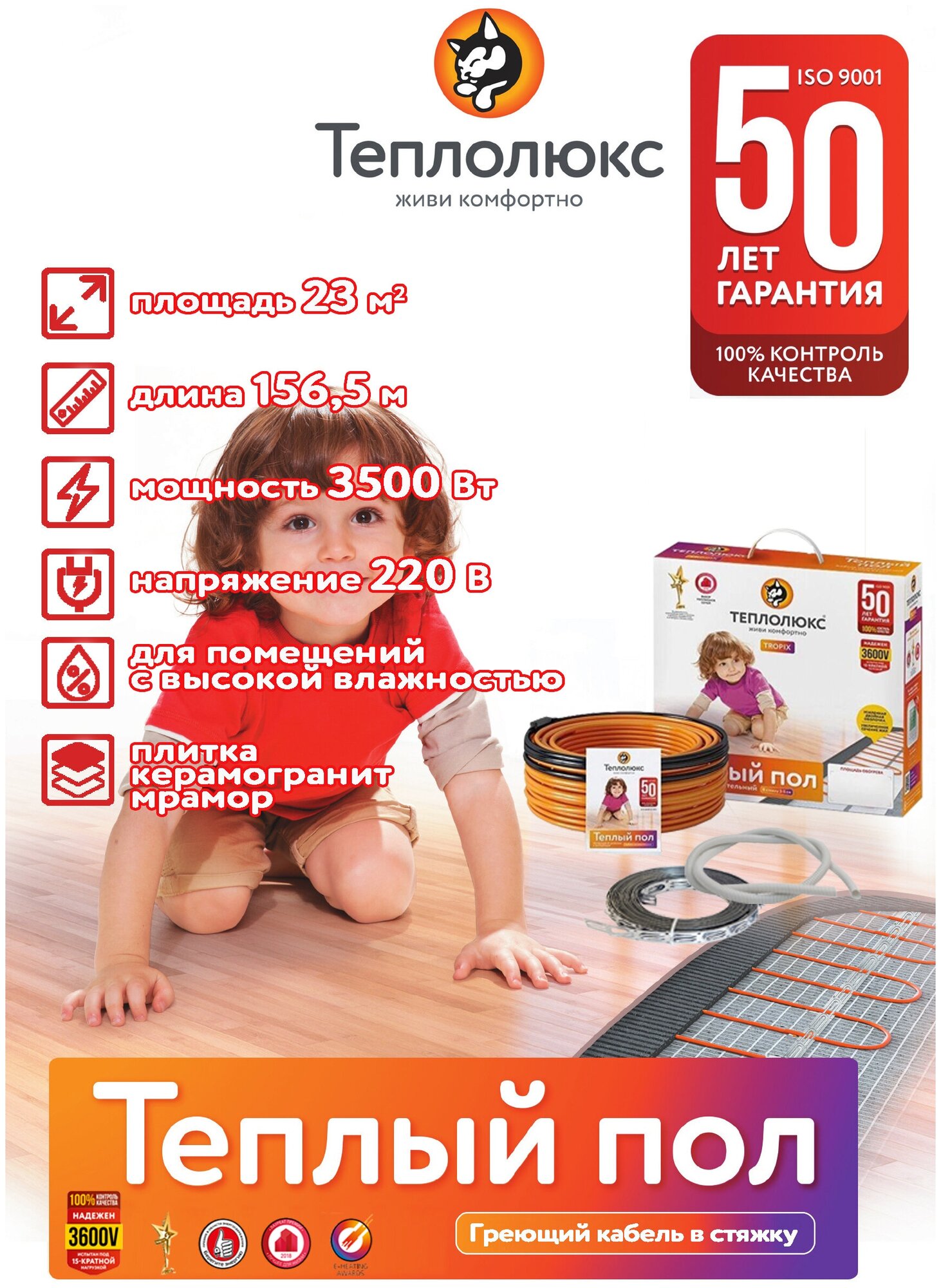 Греющий кабель для теплого пола Теплолюкс Tropix ТЛБЭ 156,5 м/3500 Вт