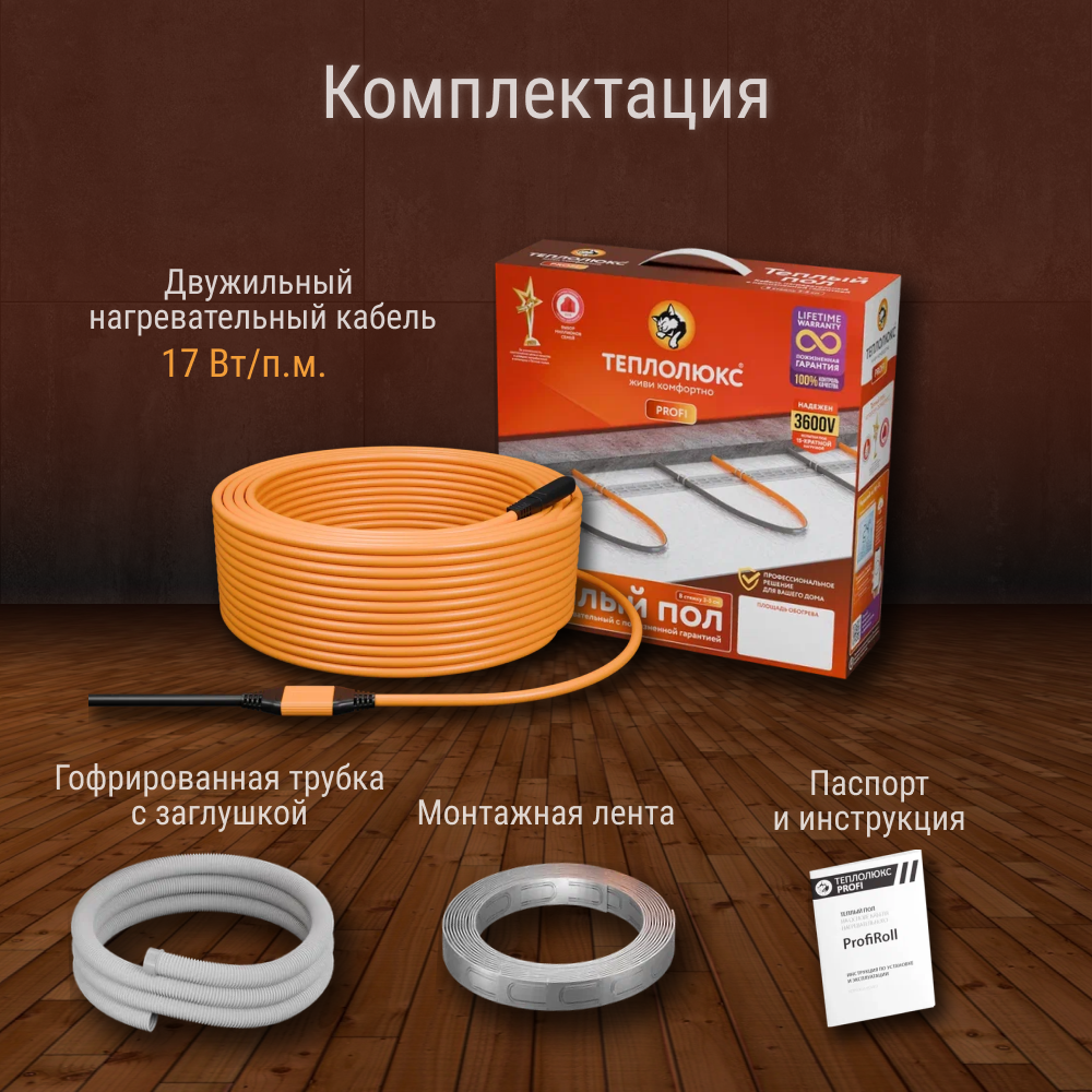 Греющий кабель, Теплолюкс, ProfiRoll 116,5м, 13.5 м2, длина кабеля 116.5 м