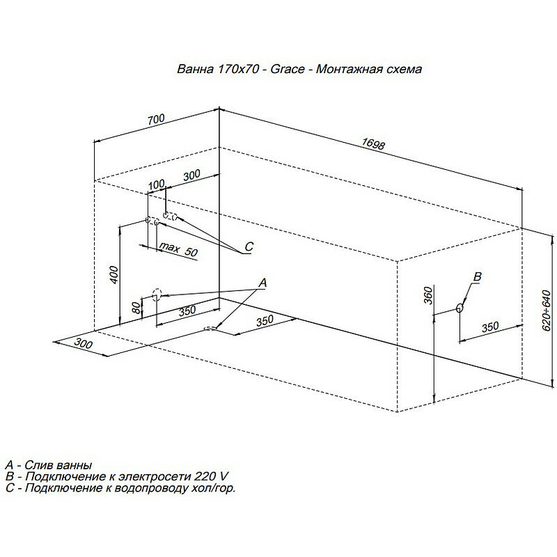 Акриловая ванна Aquanet Grace 170x70 (с каркасом)