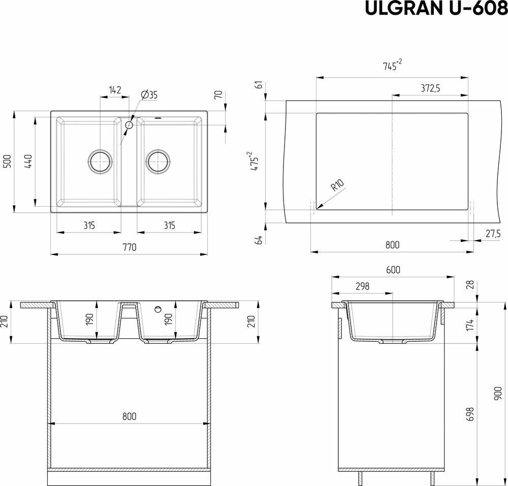 Кухонная мойка Ulgran черный U-608-308 интересное: