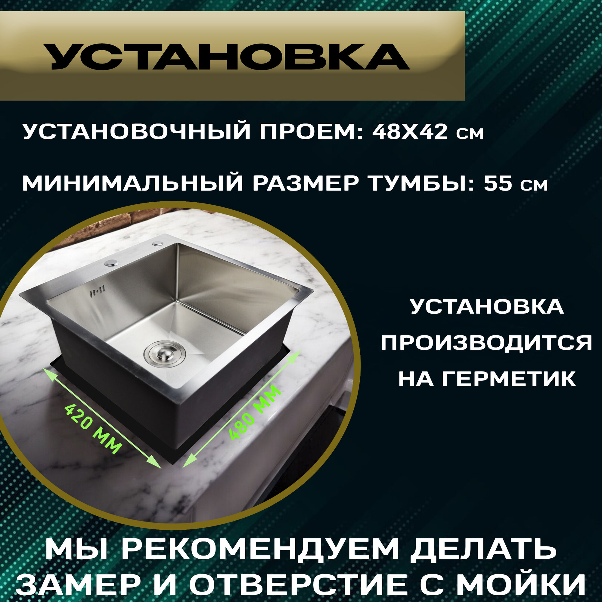 Мойка SIRIUSLINE Premium 50х50 из нержавеющей стали Графит SL5050G (в комплекте с коландером, врезным дозатором, и сифоном) толщина стали 3 мм