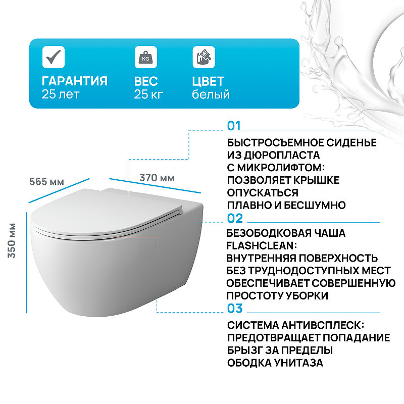 | Дополнительная информация | в комплекте поставки: чаша унитаза; крепление для унитаза; сиденье с креплениями; инструкция по монтажу и эксплуатации |