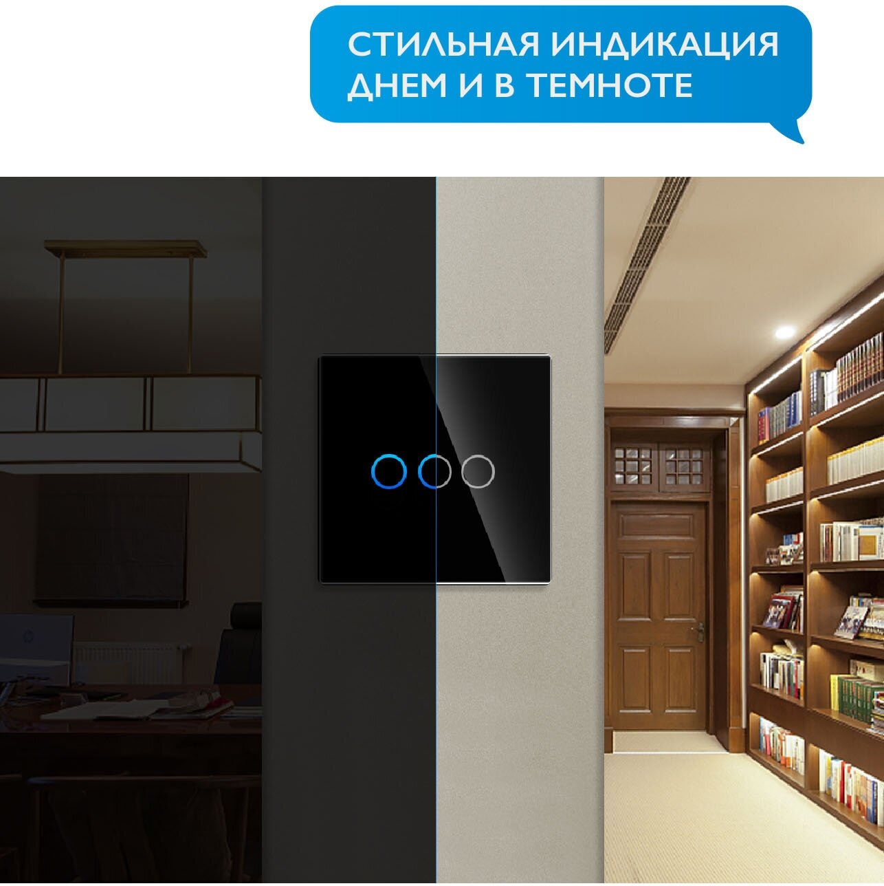 Купить Сенсорный выключатель стеклянный Easy Tech/ выключатель трехклавишный черный, 300W/ переключатель света