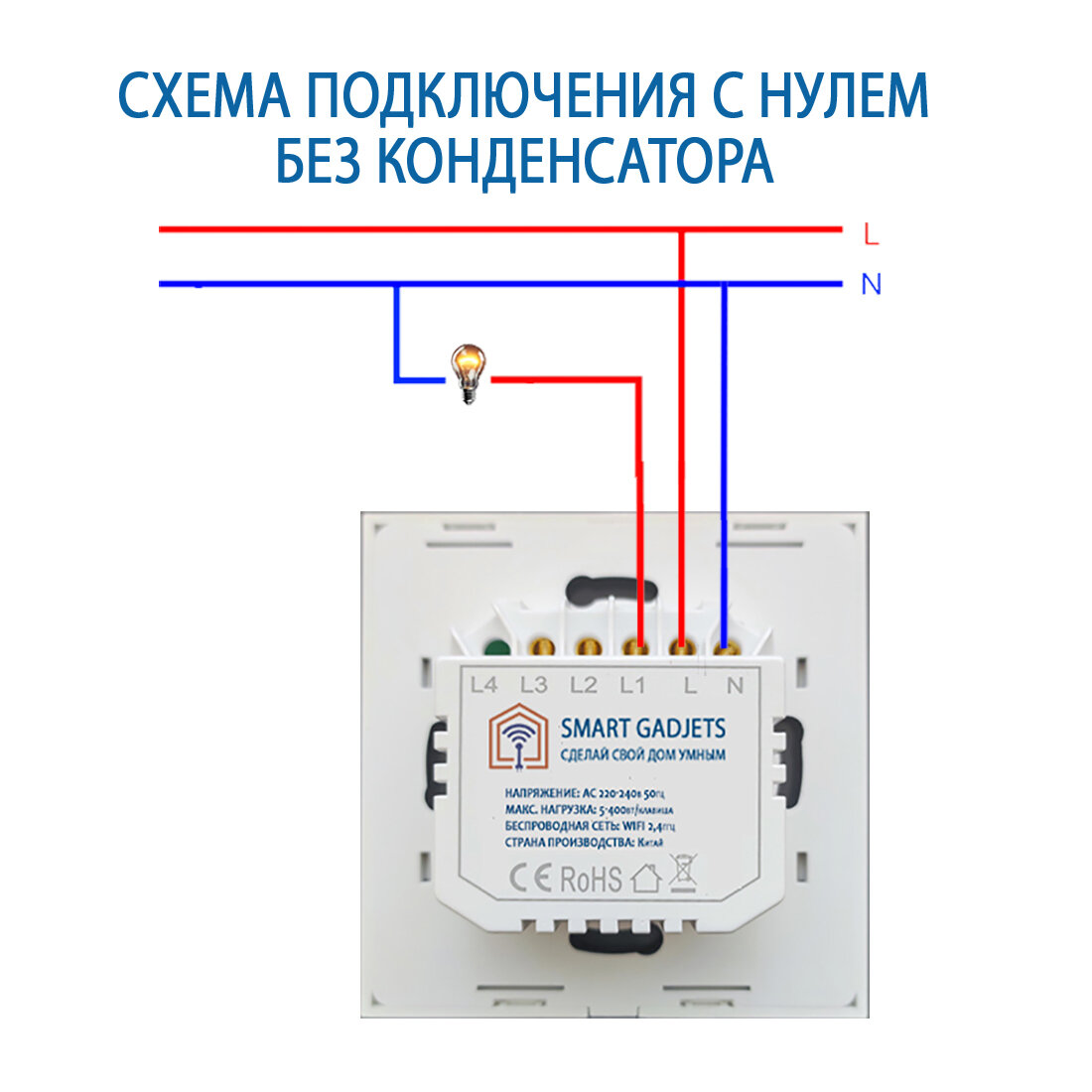 Умный выключатель с Алисой, сенсорный выключатель с Wi-Fi одноклавишный белый, подключение с нулем и без нуля, закаленное стекло