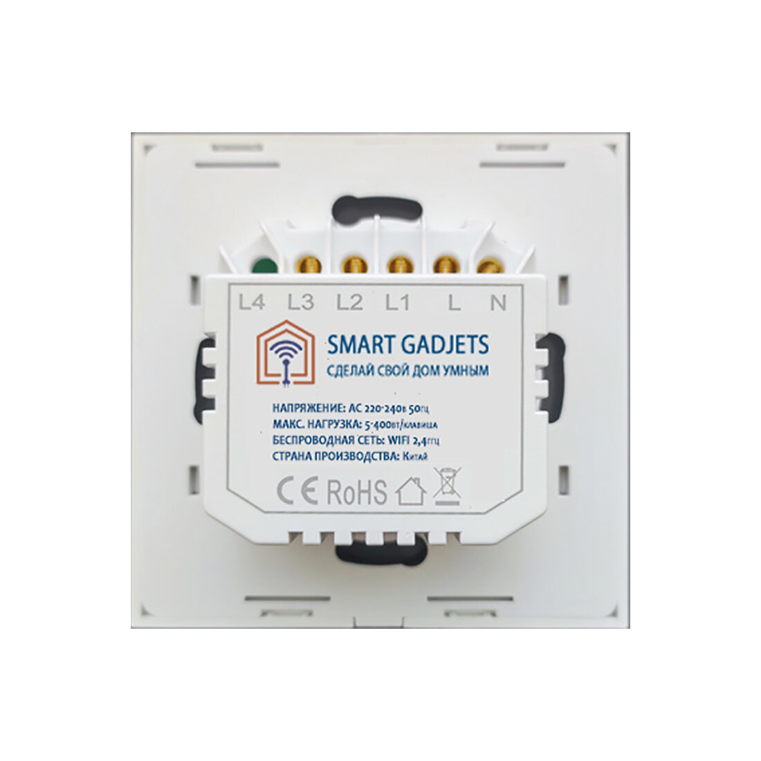 Умный сенсорный четырехклавишный Wi-Fi выключатель с Алисой, белый