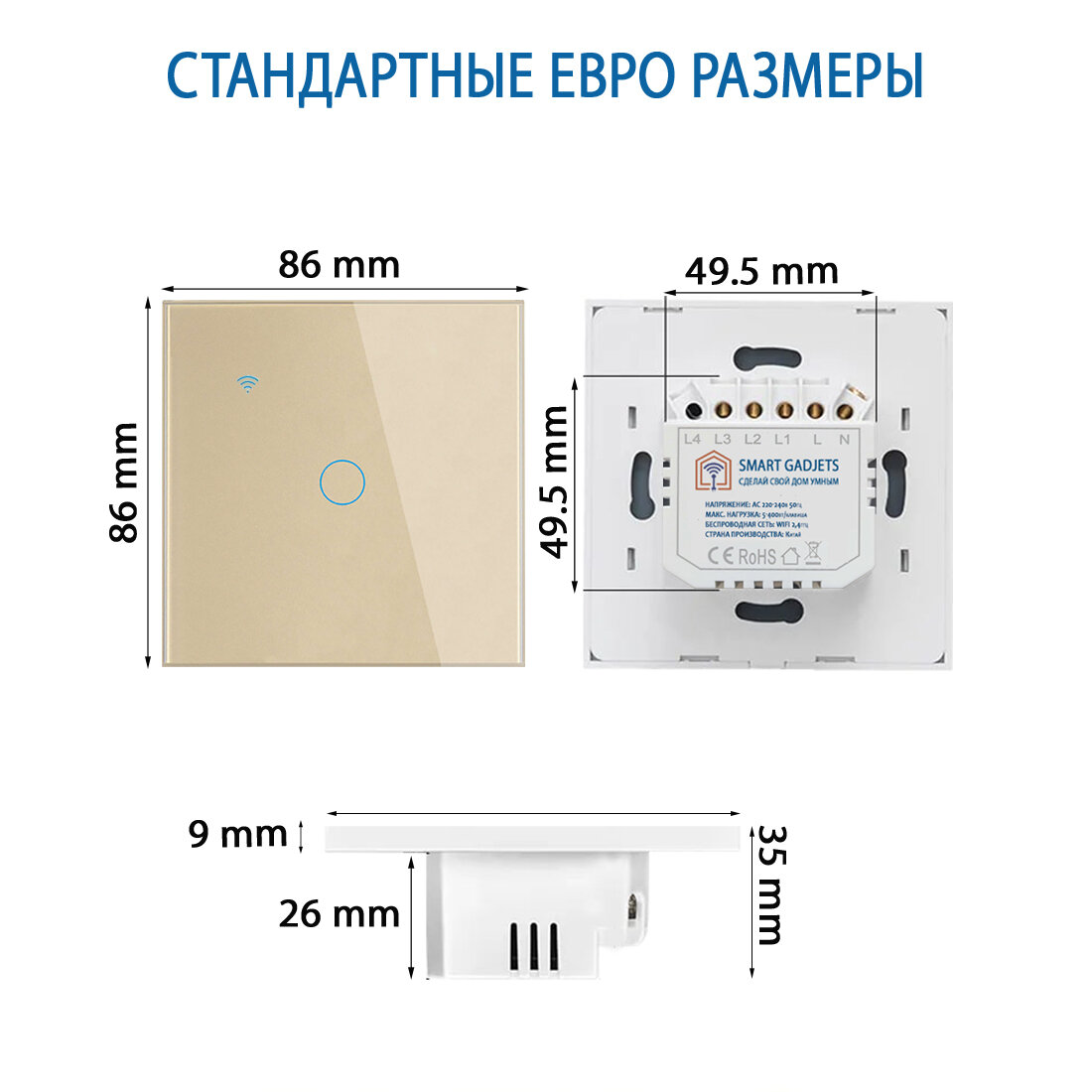 СохранитьУмный сенсорный одноклавишный Wi-Fi выключатель с Алисой, золотой интересное: