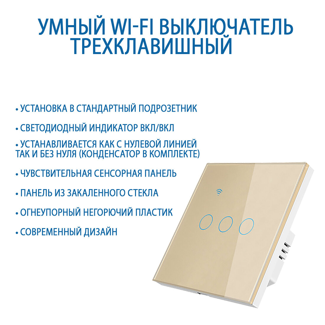 СохранитьУмный сенсорный трехклавишный Wi-Fi выключатель с Алисой, золотой интересное: