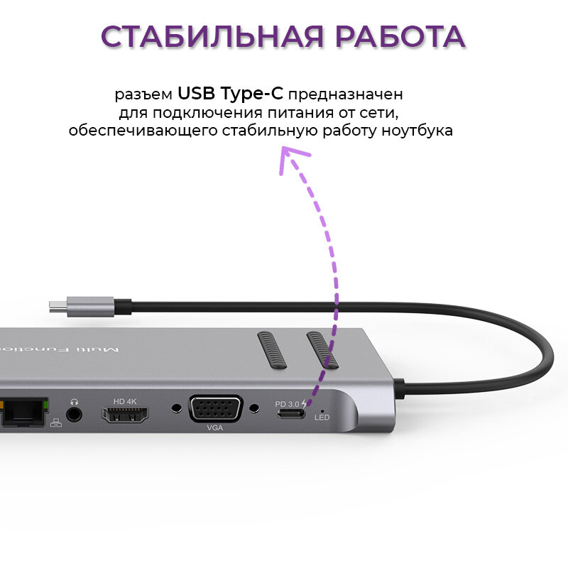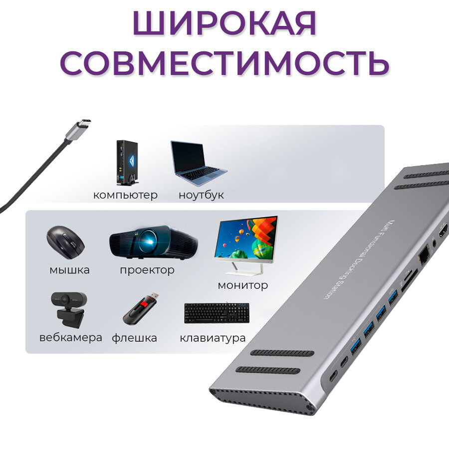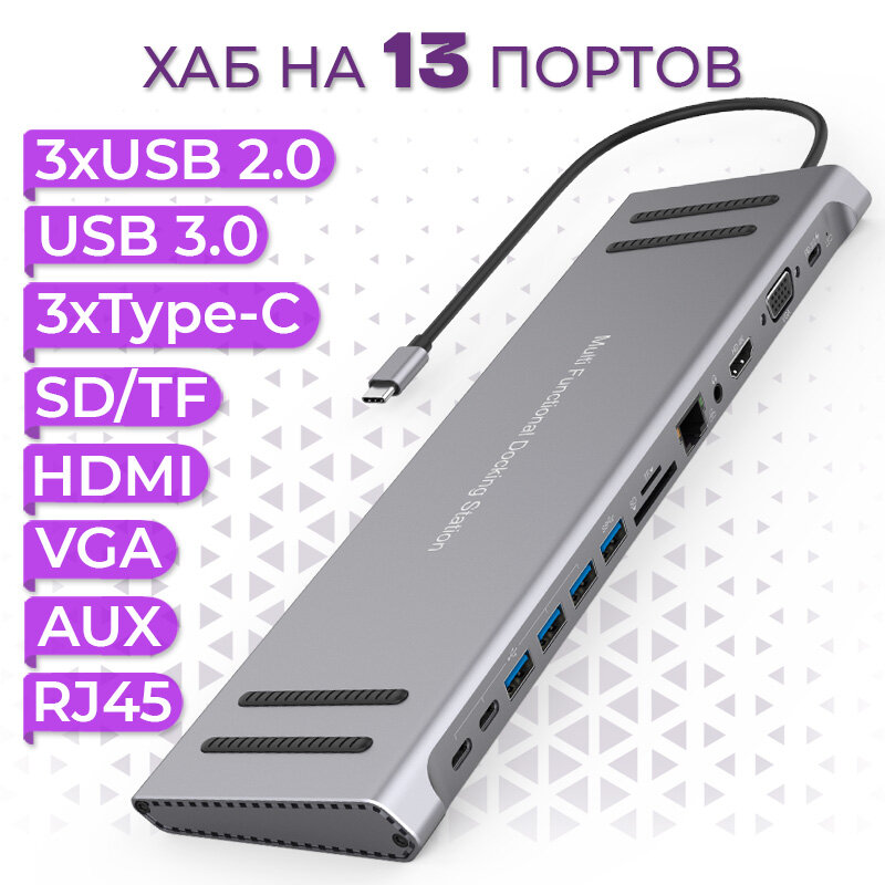 Type-C разветвитель хаб Onten на 13 выходов 3xUSB 2.0, USB 3.0, HDMI, VGA, Ethernet RJ45, TF/SD, 3xType-C, AUX интересное: