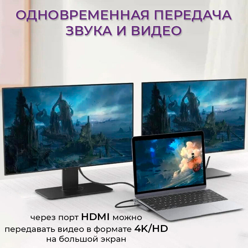 USB-концентратор Type-C Хаб Hub HB23 Easy view HDMI + USB3.0 + USB2.0 + RJ45 + PD